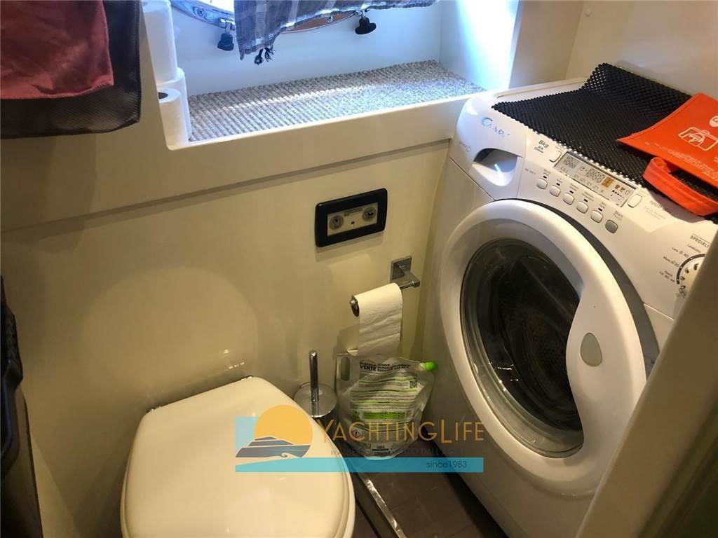 Altoparlanti, Antenna Satellitare TV, Aria condizionata, Boiler, Cassaforte, Cucina, Cuscineria completa, Decoder satellite, Dissalatore, Frigorifero esterno, Frigorifero interno, Impianto acque nere, Impianto TV, Inverter, Lavasciuga, Lavastoviglie, Microonde, Pavimento interno in legno, Piastra in vetroceramica, Prese interne 12v, Prese interne 220v, Riscaldamento, Stereo, Teli copri finestra, Tendalino, 3 TV, 4 WC marino elettrico, Zattera di salvataggio