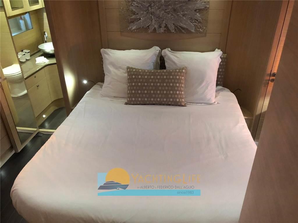 2 Matrimoniale italiana, 1 Doppia in piano, 1 Cabina equipaggio, 2 Toilette con doccia, 1 Dinette, 1 Cucina, 1 Salone, 1 Toilette Equipaggio, 1 Toilette doccia no bidet