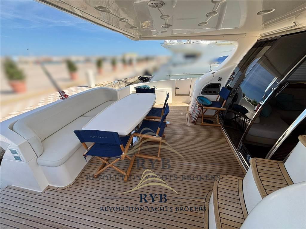 Allarme sentina, Ancora, Camminamenti laterali in teak, Doccia esterna, Doppia timoneria, Elica di poppa - stern thruster, Elica di prua - bow thruster, Faro orientabile, Flap idraulici, Gruette per tender su fly, Impianto antincendio, Lavandino nel Pozzetto, Luci di cortesia, Passerella, Piattaforma, Pompa di sentina automatica, Pompa di sentina elettrica, Ponte in teak, Porta ingresso, Pozzetto Teak, Presa 220V banchina, Rollbar, Salpa Ancore Elettrico, Scaletta da bagno, Stabilizzatori (seakeeper), Tavolo pozzetto, Tromba, Winch tonneggio di poppa.