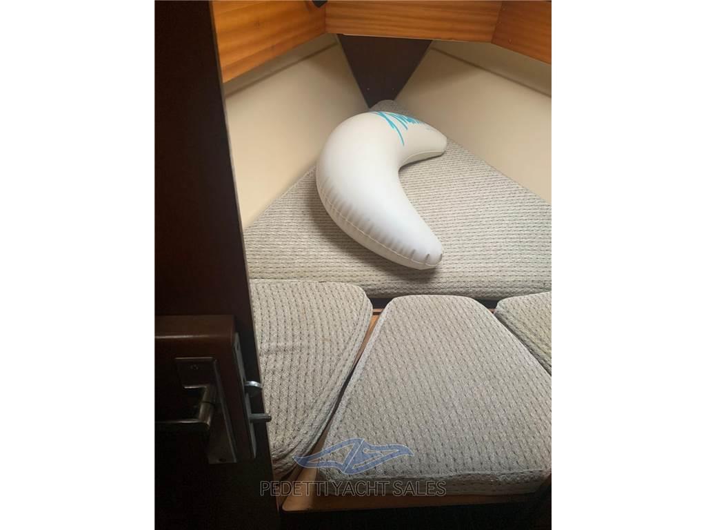 Il Dufour 31 del 1977 è un veliero classico francese progettato da Michel Dufour, che unisce solidità costruttiva e fascino senza tempo. Con una lunghezza di circa 9,4 metri e un baglio di oltre 3 metri, questa imbarcazione a vela offre un ottimo compromesso tra prestazioni in mare e comfort a bordo, ideale per crociere costiere e navigazioni entro le 12 miglia. Lo scafo in vetroresina presenta uno spigolo pronunciato con deriva fissa, mentre il piano velico a sloop con albero a testa d'albero permette un buon rendimento anche con venti leggeri. Gli interni sono funzionali, con spazio per dormire comodamente e una cabina con cucina e bagno. Propulsore entrobordo garantisce autonomia e sicurezza nelle manovre in porto. Il Dufour 31 è apprezzato per la sua affidabilità, navigabilità e il carattere marinaro classico che lo rende un simbolo della cantieristica degli anni '70, amato dagli appassionati di barche d'epoca e di vela tradizionale.