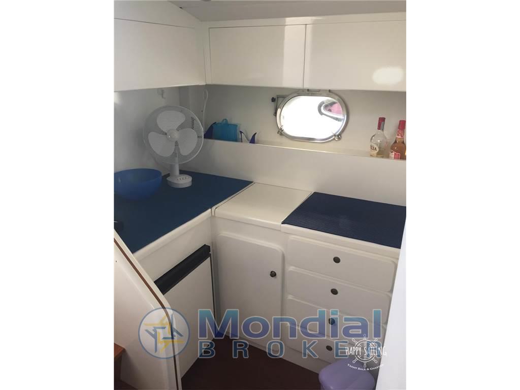Altoparlanti, Bimini, Cappottina, Copripozzetto, Cucina, Cuscineria completa, Fornello, Forno, Frigorifero esterno, Frigorifero interno, Pavimento interno in legno, Prese interne 12v, Stereo, WC marino elettrico