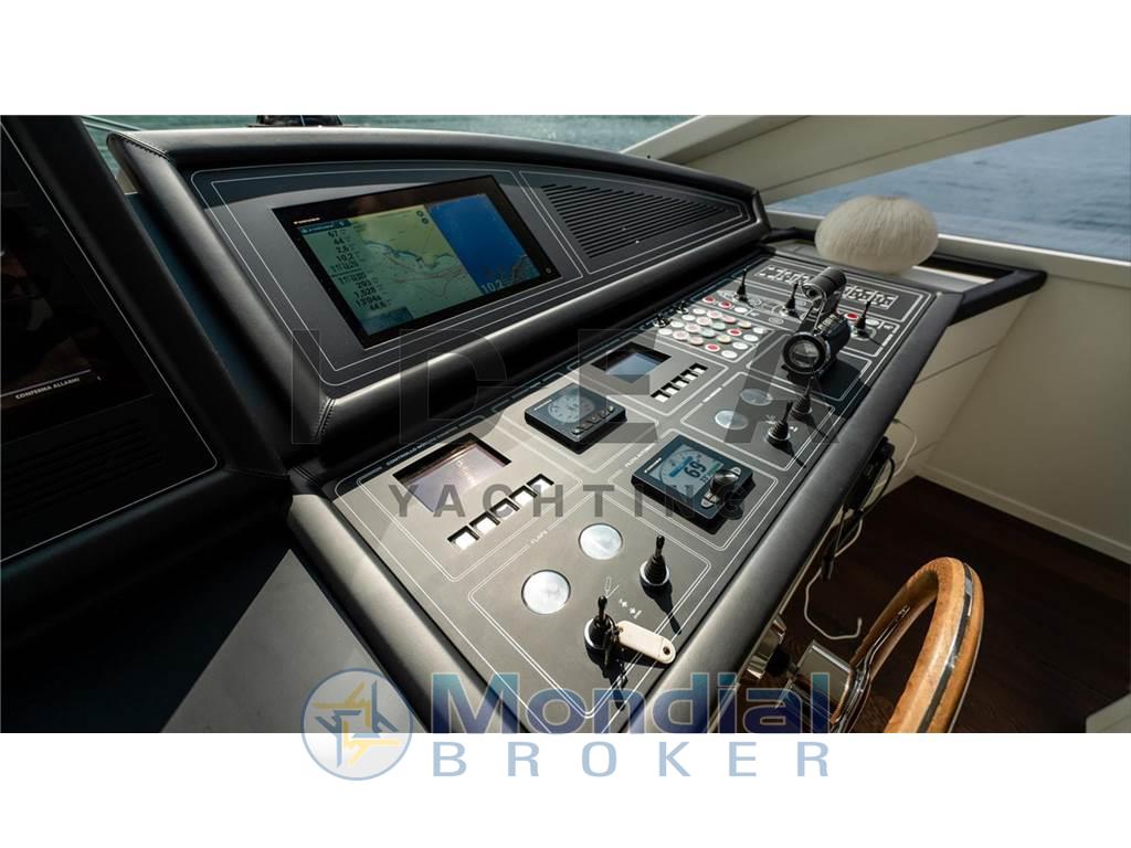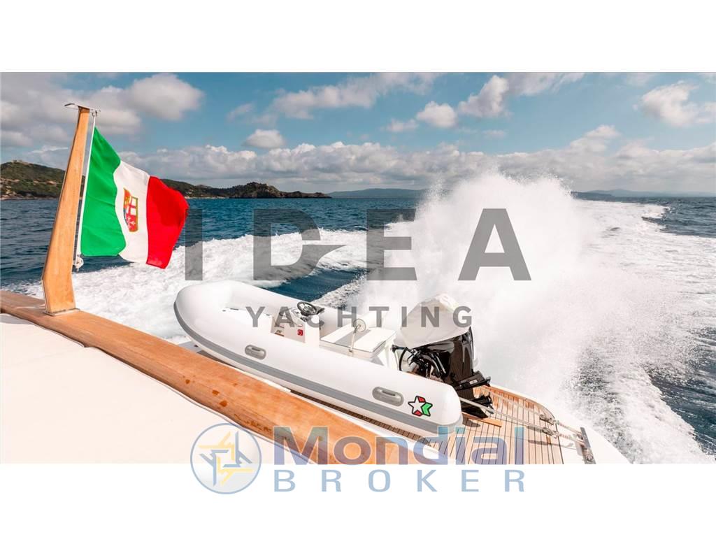 Ancora (Bruce 100kg + 110mt chain), Autogonfiabile (x10 pax), Camminamenti laterali in teak, Caricabatterie (Quick), Doppia timoneria, Elica di poppa - stern thruster (Hydraulic), Elica di prua - bow thruster (Hydraulic), Flap idraulici, Gruette per tender (Pincraft), Impianto antincendio, Passerella (Hydraulic Pincraft), Pompa di sentina automatica, Pozzetto Teak, Ripetitore strumentazione (Flybridge), Selle per Tender, Tavolo pozzetto, Tender (Novamarine 4mt Mercury 40HP), Winch Elettrico, Winch tonneggio di poppa (Lofrans), Winch tonneggio di prua.