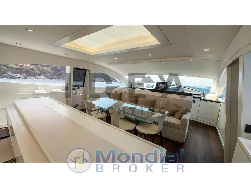 Un bellissimo yacht sportivo aperto con uno spazio ampio grazie a un ponte superiore luminoso e una bellissima zona pranzo per 10 persone; accanto alla postazione di timone, abbiamo la cambusa, completamente attrezzata con tutti gli elettrodomestici nuovi di zecca e piccoli saloon con doppio divano per la mensa.