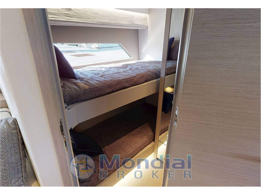 Il layout a tre cabine sul ponte inferiore comprende un'ampia cabina armatoriale con bagno privato, una cabina VIP matrimoniale a prua e una cabina con due letti a castello.