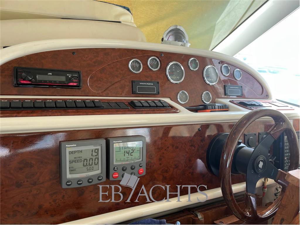 Il flybridge, vero punto di forza dell’imbarcazione, è attrezzato con plancia di comando dedicata, bimini top, comode sedute e ampia vivibilità, ideale per godersi la navigazione e i momenti di relax all’aperto.