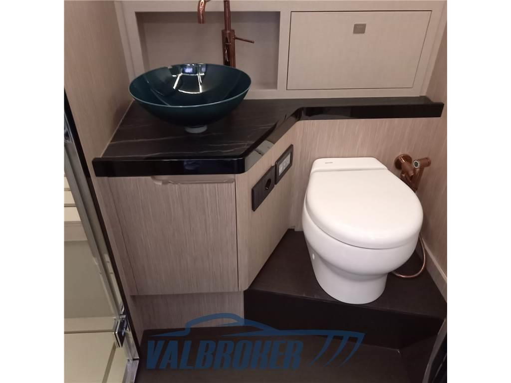 AIS (700 ricetrasmettitore), Ancora (elettronica DPS), Angolo barra, Auto Dynamic Trim Interceptor (Volvo Penta), Autoclave, 4 Batterie, Bitte Abbattibili, Bussola, Camminamenti laterali in teak, Caricabatterie, Computer di bordo, Contametri catena, 2 Display (Axiom xl 16''), Doccia esterna, Ecoscandaglio, Elica di prua - bow thruster (proporzionale), Flap elettrici, GPS, Hard top, Impianto antincendio, Joystick, Lavandino nel Pozzetto, Luci di cortesia, Luci subacquee, Passerella (con gradini, idraulica a scomparsa), Piattaforma (tender lift 400 kg), Pilota automatico, 2 Pompa di sentina automatica, Porta laterale, Pozzetto Teak, Radar (18''), Radio VHF (Ray 90), Salpa Ancore Elettrico, Scaletta da bagno (idraulica), Sedile Copilota (console centrale con 3 sedili), Tavolo pozzetto (teak + tavolo prua), T-Top (nero lucido in carbonio), Winch tonneggio di prua