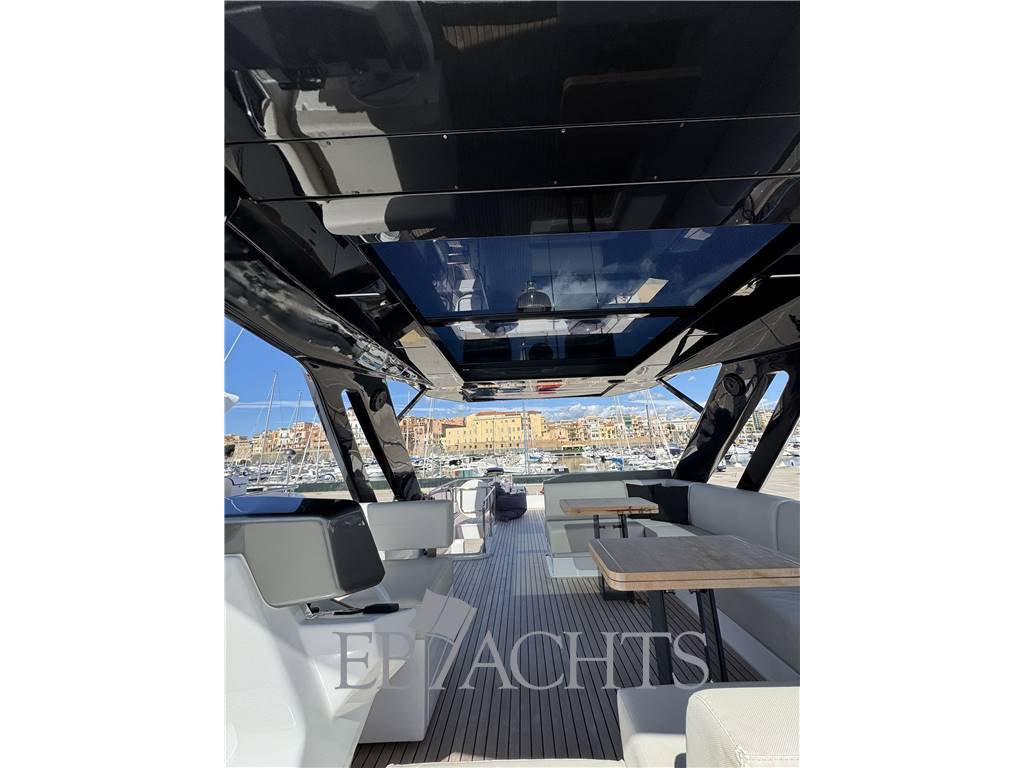 Il flybridge offre un’area relax protetta da un elegante hard top in vetro, arricchita da un tavolo in teak, grill, frigorifero e un ampio prendisole, per vivere l’aria aperta con il massimo comfort.