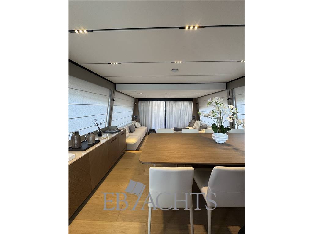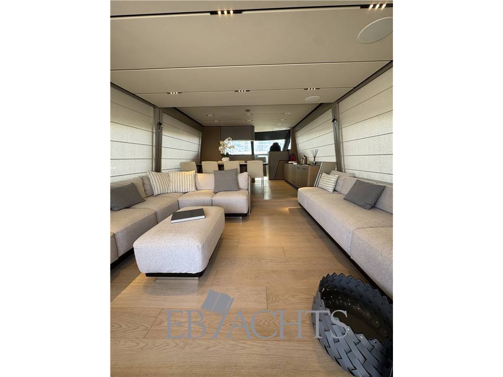 Con i suoi 22,30 metri di lunghezza, si distingue per una carena slanciata e un profilo dinamico, espressione della più recente evoluzione stilistica del cantiere Ferretti.