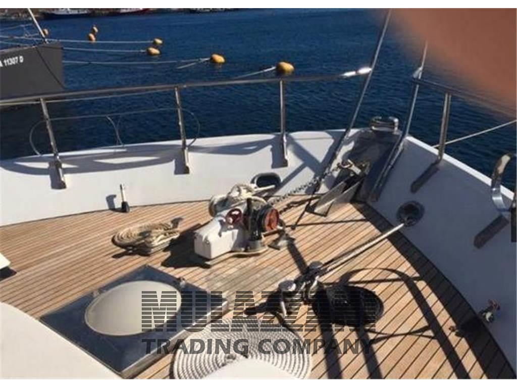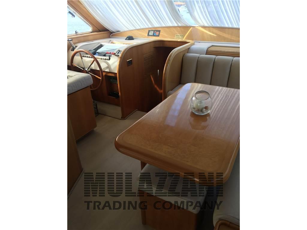 Allarme motore, Allarme sentina, Ancora, Angolo barra, Autoclave, Autogonfiabile, 5 Batterie, Bussola, Camminamenti laterali in teak, Caricabatterie, Contamiglia, Display, Doccia esterna, Ecoscandaglio, Elica di prua - bow thruster, Flap idraulici, GPS, Indicatori Flaps, Interfono, Lavaggio catena, Pannelli Solari, Passerella, Piattaforma, Pilota automatico, Pompa di sentina elettrica, Pompa di sentina manuale, Porta ingresso, Porta laterale, Pozzetto Teak, Presa 220V banchina, Presa acqua banchina, Radar, Raddrizzatore, 2 Radio VHF, Salpa Ancore Elettrico, Scaletta da bagno, SSB, Tavolo pozzetto, Tender, Tromba, Winch Elettrico