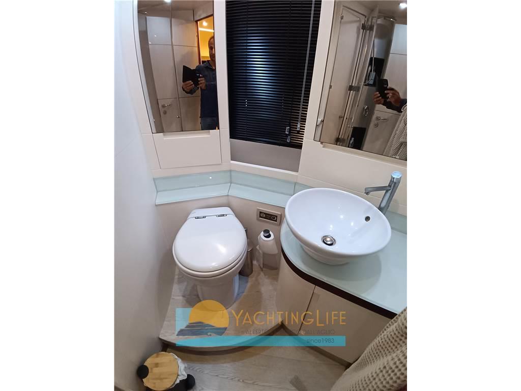 Altoparlanti, Antenna Satellitare TV, Aria condizionata, Boiler, Cucina, Cuscineria completa, Frigorifero esterno, Frigorifero interno, ICE Maker, Lavastoviglie, Pavimento interno in legno, Piastra in vetroceramica, Prese interne 12v, Prese interne 220v, Riscaldamento, Stereo, Tendalino, TV, 4 WC marino elettrico, Winecooler
