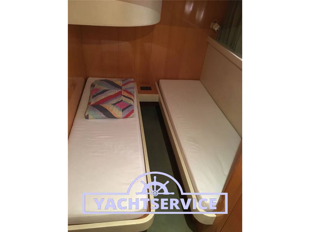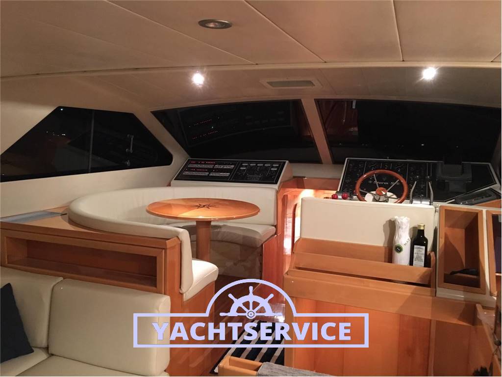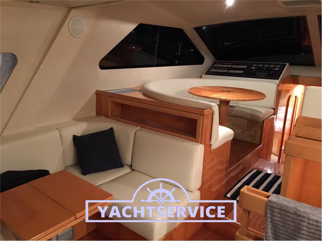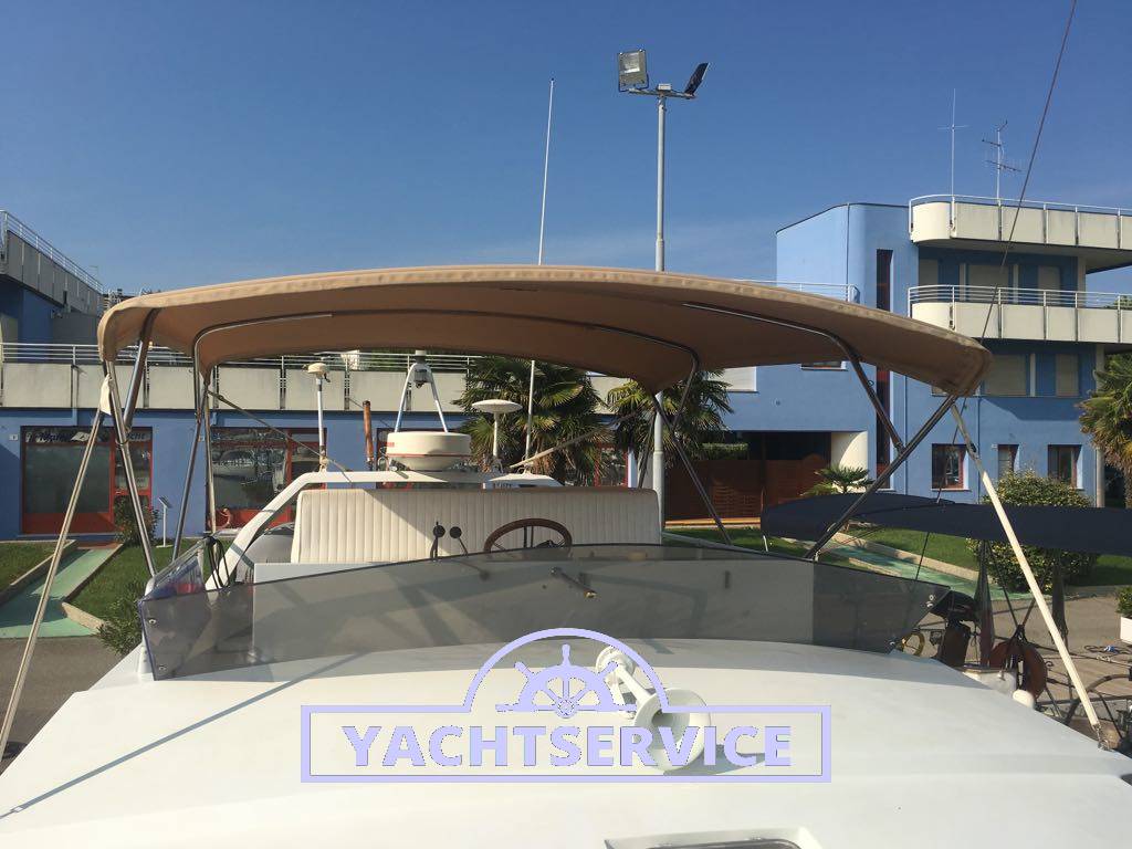 Lavori eseguiti a bordo negli ultimi 2 anni: revisione 2 turbine motori + revisione pompe iniezione, filtri nuovi, sostituzione tenute meccaniche assi nuove, boccole assi nuove, tutti i pellami dei divani sono stati sostituiti in pelle bianca, materassi nuovi, revisione motore elica di prua, sostituzione catena ancora nuova, cuscini esterni pozzetto e prendisole di prua nuovi, telo copri strumentazione fly nuovo.