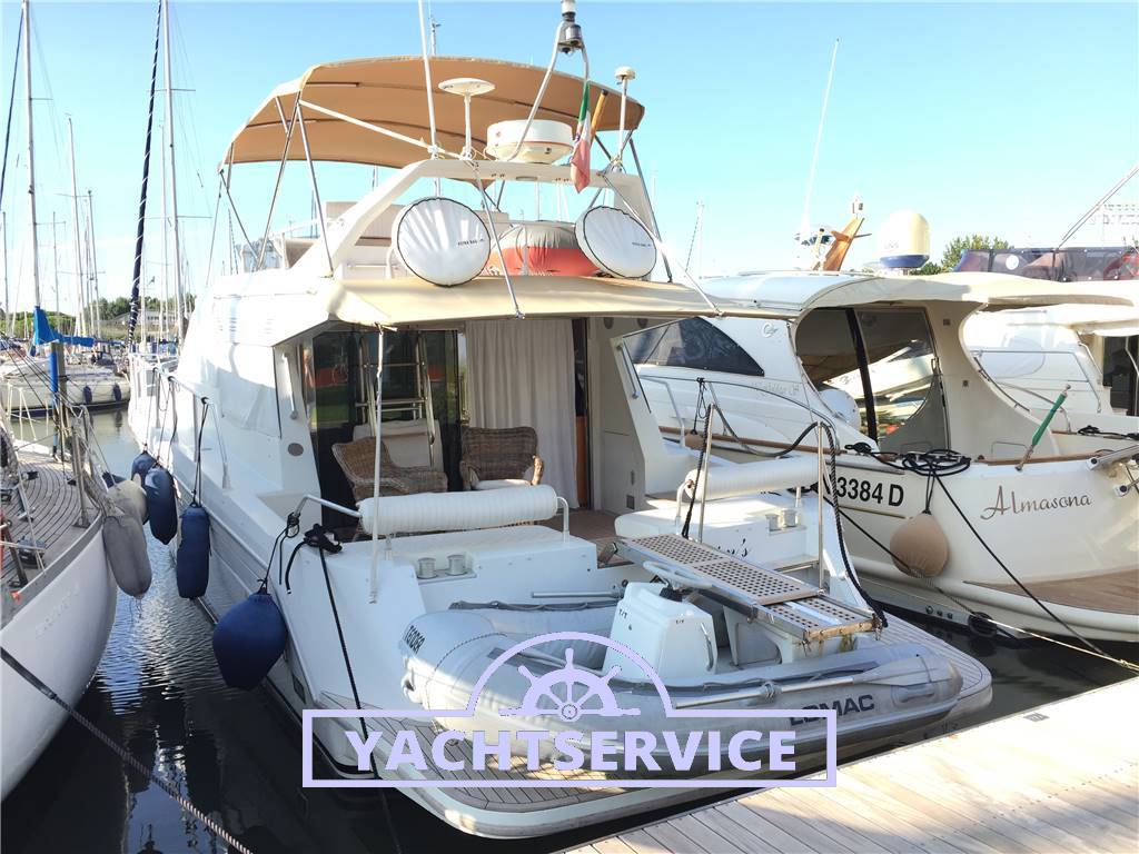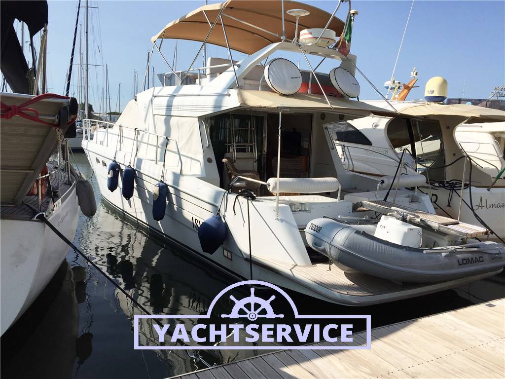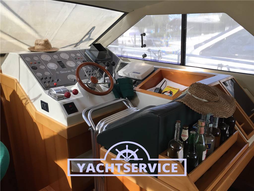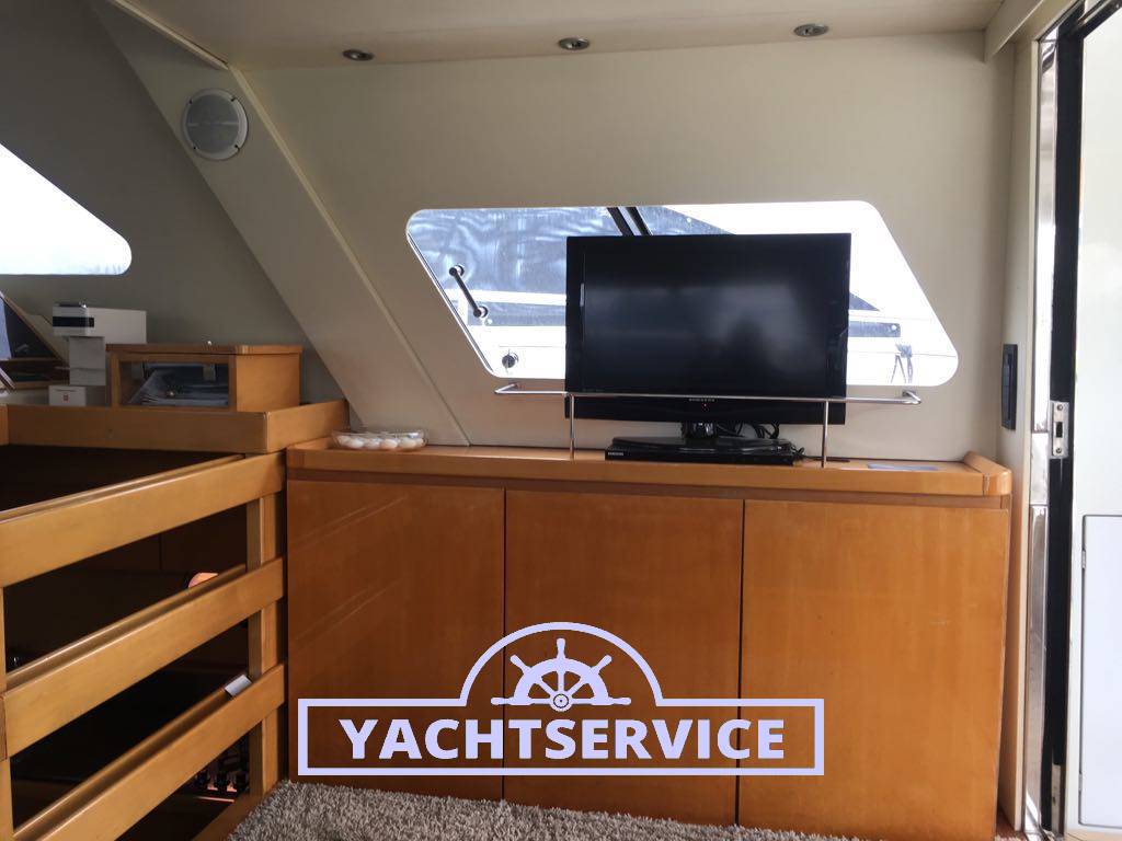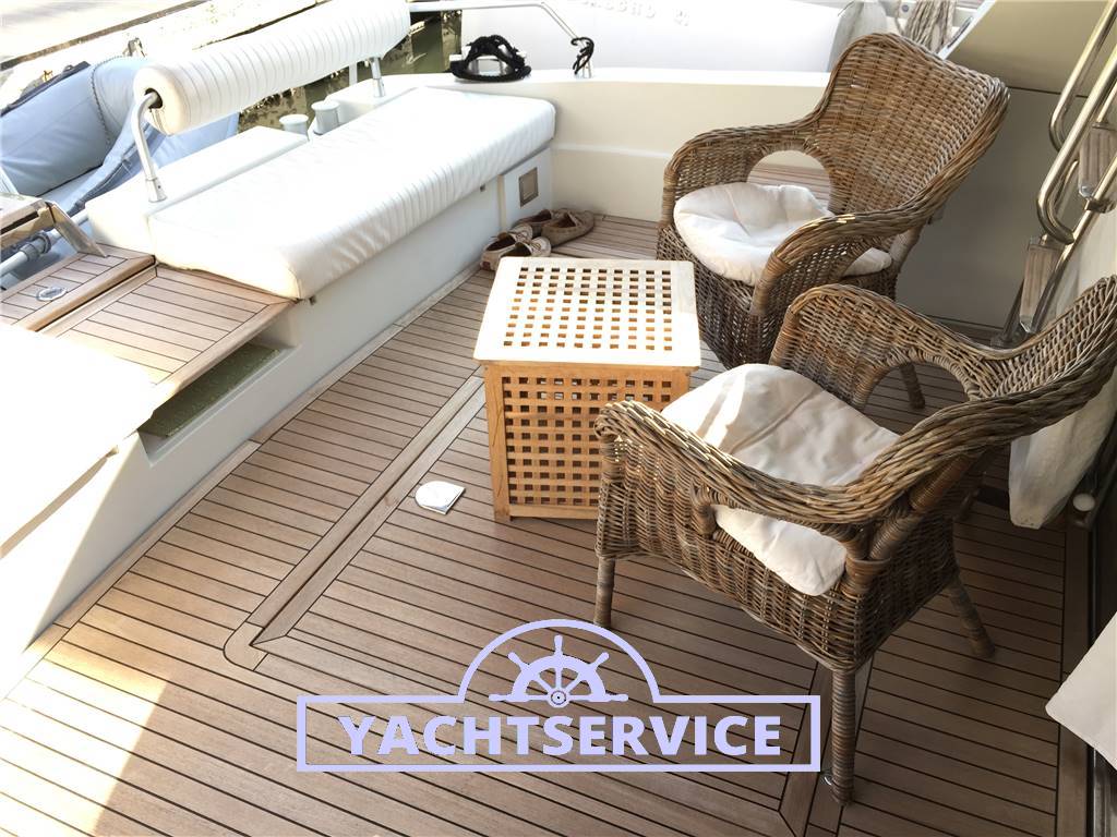 Lavori eseguiti a bordo negli ultimi 2 anni: revisione 2 turbine motori + revisione pompe iniezione, filtri nuovi, sostituzione tenute meccaniche assi nuove, boccole assi nuove, tutti i pellami dei divani sono stati sostituiti in pelle bianca, materassi nuovi, revisione motore elica di prua, sostituzione catena ancora nuova, cuscini esterni pozzetto e prendisole di prua nuovi, telo copri strumentazione fly nuovo.