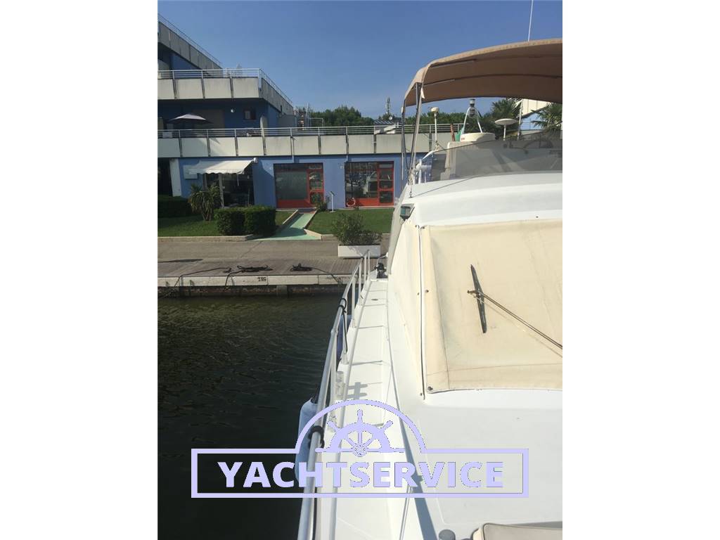 Bimini in acciaio sul fly, tendalino copri pozzetto, Aria condizionata e Riscaldamento in dinette, Faro orientabile, Stereo, TV, Tergivetro, Passerella idraulica, Antincendio, Flaps, Scala bagno, Doccia esterna caldo freddo
