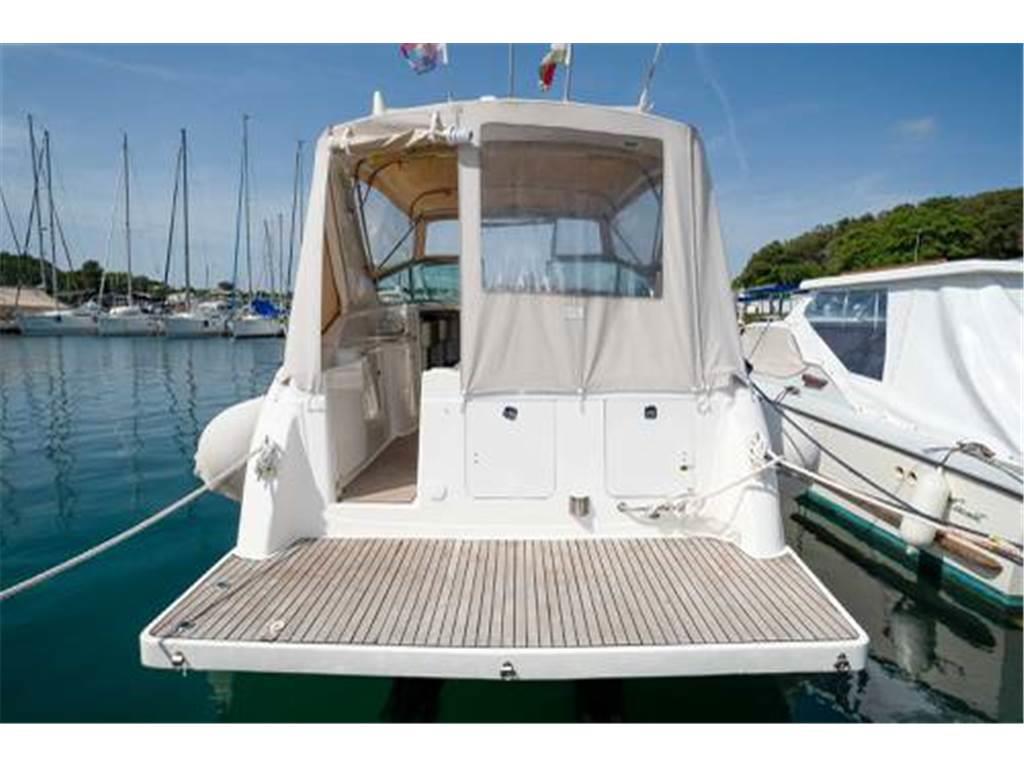 VHF, doccia in pozzetto, verricello elettrico per l'ancora, bimini, caricabatterie, cuscini di coperta, elica di prua, impianto audio, parabordi, forno a microonde, bussola, piattaforma da bagno, scaletta da bagno, pannelli solari, frigorifero, fornello, teak a poppa