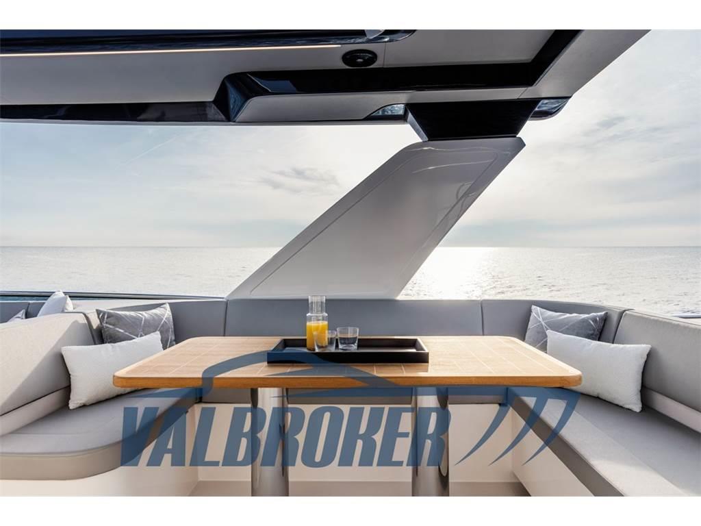 Altoparlanti, Aria condizionata (Tropicale), BBQ/ Grill, Boiler, 2 Cassaforte, Controllo Domotica, Cuscineria completa, Cuscineria fly, Digitale Terrestre, Dimmer per Luci, Dissalatore (140 l/h), Frigorifero esterno, Frigorifero interno, ICE Maker (sul Fly), Inverter, Lavasciuga, Lavastoviglie, Meccanismo saliscendi per TV, Stereo, 2 Telecamera, Telo Copertura Fly, Tenda Elettrica (pozzetto), Tendalino (fly a poppa con pali telescopici in carbonio), TV, WC marino elettrico, Winecooler, Zanzariere, terza postazione di ormeggio in pozzetto, Gonfiatore/sgonfiatore integrato situato all'ingresso della cabina dell'equipaggio/vano di stivaggio posteriore, Corrimano laterale del flybridge con dettaglio in fibra di vetro bianca, flybridge in teak massello, controllo remoto Garmin, Volvo Assisted, Docking, caricatore per telefono, Kit Volvo anti corrosione,