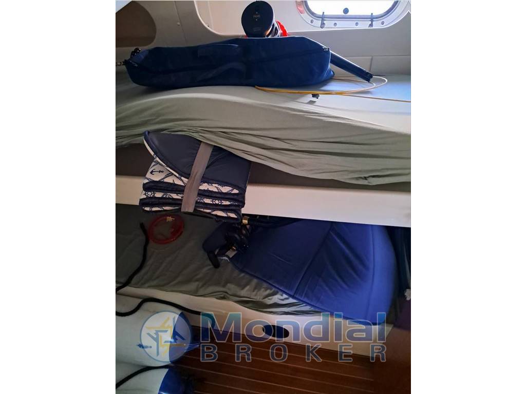 AMPIO SALOTTINO IN ZONA GUIDA CON UN BEL TAVOLO E CUCINA A MURATA ZONA NOTTE CON CABINA LATO SX DOTATA DI DUE LETTI A CASTELLO- A DX BAGNO CON DOCCIA E WC ELETTRICO A PRUA CABINA PADRONALE CON LETTO A PENISOLA.