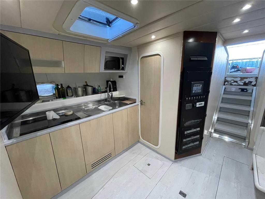 Refit totale 2023: Motori nuovi Man r6 800 con invertitori nuovi ZF 325; Allestimento interni nuovi (cucina, bagni, vip ospiti e salone); Sistema di accumulo da 30kw x un autonomia di 24/48 ore senza l uso del generatore; Passerella idraulica pincraft nuova a 2 sfili; Coperta in teak nuova; Cuscineria interna ed esterna nuova; Plancia nuova con 2 Garmin touch gpsmap 8416 16"; Domotica di bordo completa con gestione completamente elettronica di tutta l imbarcazione; TV lift in pozzetto con TV 43"; Stereo fusion apollo 770 con 2 amplificatori, 3 sub e 6 speakers; Tendalino nuovo 2025; Verniciatura scafo in grigio metallizzato 2025; 3 aria condizionata (vip, ospiti, armatoriale); Impianto elettrico ed idraulico nuovi; Illuminazione a led interna ed esterna; Tender lift besenzoni x alaggio tender/moto d acqua fino a 600kg; Insonorizzazione sala macchine completa; Eliche nuove a 4 pale radice; Velocità massima 37 nodi, velocità di crociera 25 nodi consumo 140lt/h;