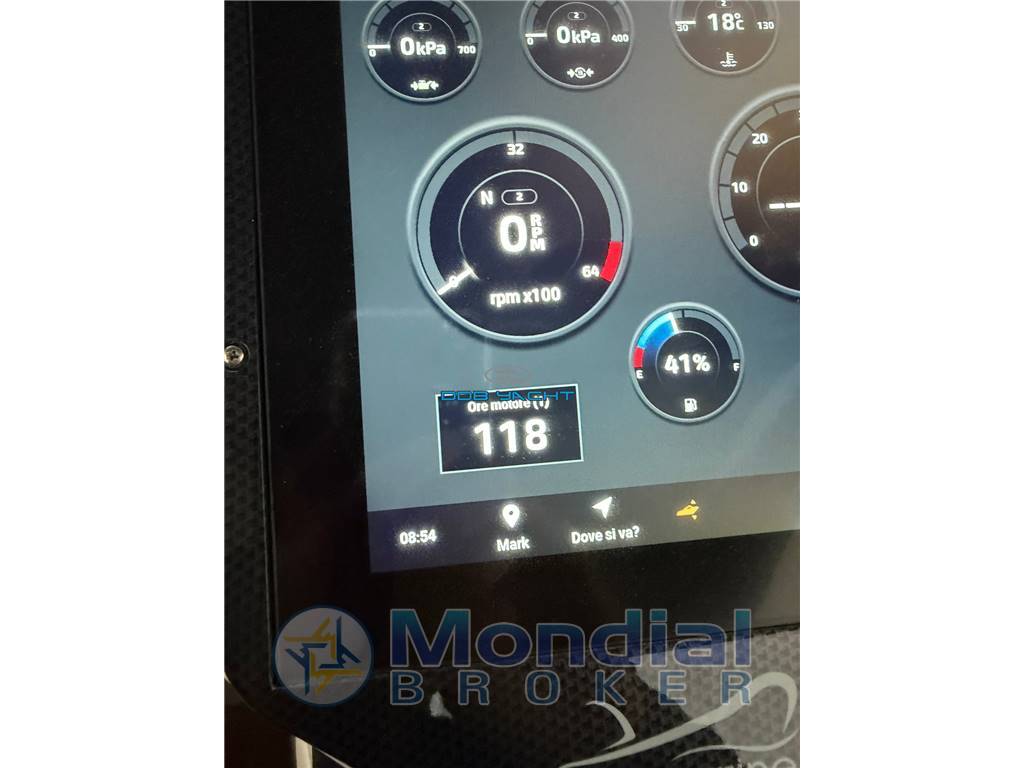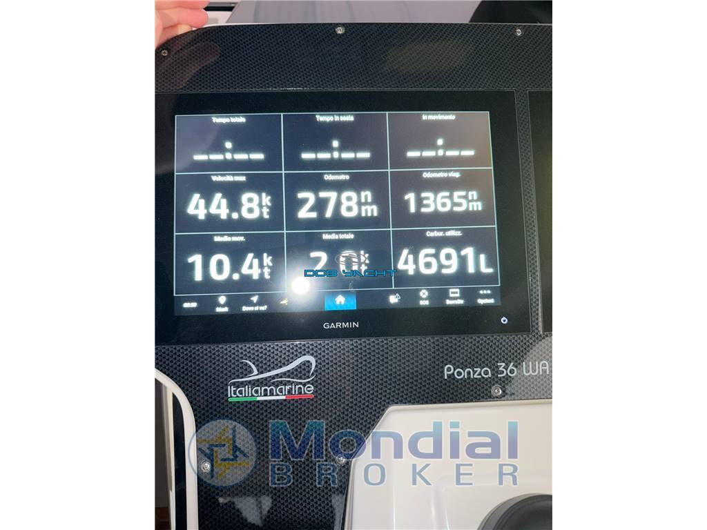 : manette elettroniche con SINGLE LEVEL, doppio gps GARMIN TOUCH con INDICATORE STRUMENTI e CARTOGRAFIA interfacciato con ECO, bussola, luci via, tromba, stereo JL AUDIO con casse JL, aspiratori.