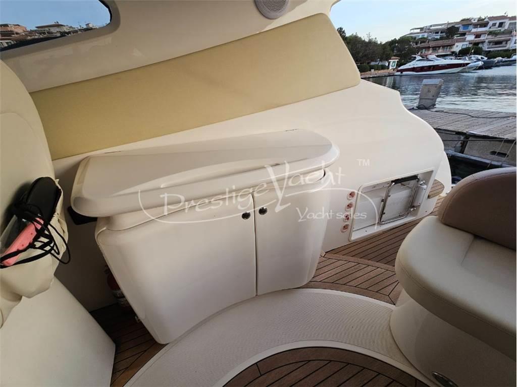 Allarme motore, Autoclave, Caricabatterie, Doccia esterna, Elica di prua, Faro orientabile, Flap idraulici, Hard Top, Impianto antincendio, Luci di cortesia, Passerella (idraulica), Piattaforma, 2 Pompa di sentina automatica, Porta di ingresso, Pozzetto in teak, Presa 220V banchina, Rollbar, Salpa ancora elettrico, Scaletta da bagno, Tavolo in pozzetto, Tender (+fb Mercury) Cucina, Frigorifero esterno, Frigorifero interno, Microonde, 2 Piastra in vetroceramica Boiler, Clima reversibile, Inverter, Prese interne 12V, Prese interne 220V, 2 Wc marino elettrico Altoparlanti, Digitale terrestre, Impianto TV, Stereo, TV Angolo barra, Bussola, Comando motori elettronico, Contametri catena, Contamiglia, Ecoscandaglio, GPS, Plotter, Radio VHF Cuscineria di poppa, Cuscineria di prua, Cuscineria pozzetto, Tendalino