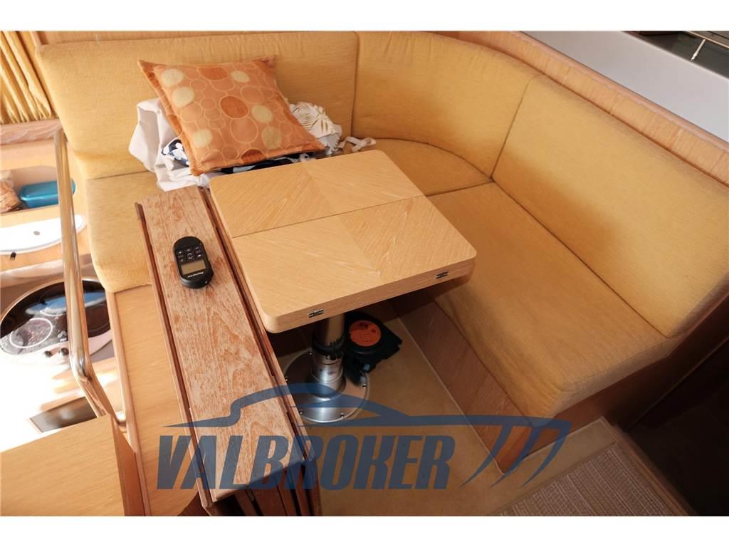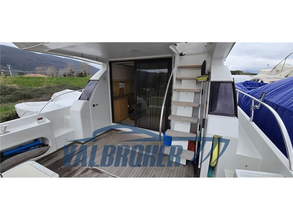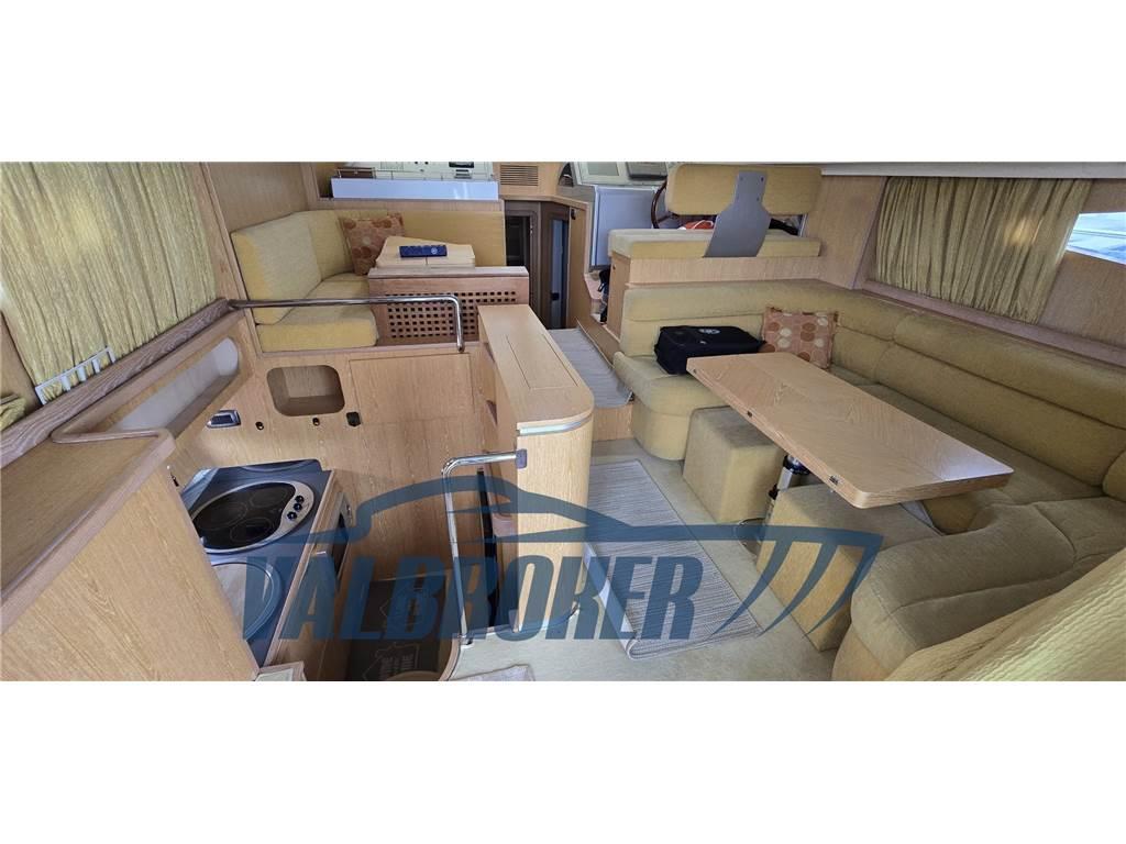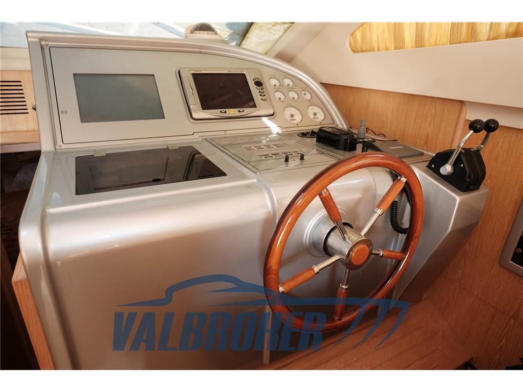 Altoparlanti, Aria condizionata (2021 Weico), Boiler, Meccanismo saliscendi per TV, Riflettore Radar, Stereo, Telo copriconsolle (fly), Tendalino (parasole in pozzetto beige), TV, WC marino elettrico, doppio pistone flap, rete oscurante estiva e invernale,gradini in teak, doppio ingresso da plancetta al pozzetto.2019: copriparabrezza, ripristino coibentazione sala macchine, scambiatore motore destro. 2021: wc maceratore nuovo. 2022: batterie servizi nuove al gel, batterie motori speciali per avviamento AGM 2025: verniciatura catena, sostituzione pannelli fono assorbenti vano motore, smerigliatura assi eliche, verniciatura zinchi, sistemazione taratura computer di bordo touchscreen, batterie servizi nuovi.