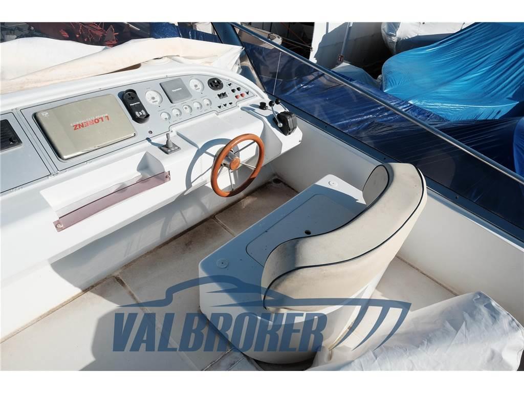 Storico cantiere italiano, sinonimo di robustezza ed affidabilità nel tempo. Flybridge di generose dimensioni: Cabina armatoriale a prua e due cabine doppie a poppa con due bagni. Motorizzata 2x460 Caterpillar C7 in linea d'asse con solo 480 ore di moto. Tagliando motori, antivegetativa e lucidatura eseguiti annualmente con fatture disponibili. FULL OPTIONAL: Aria condizionata, generatore, elica di prua, pozzetto e plancetta in teak. Intestata a società, fatturabile. Possibile permuta con OPEN recente, massimo 10 metri.