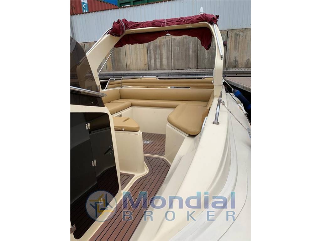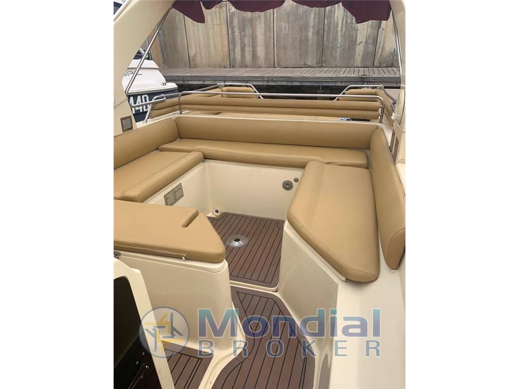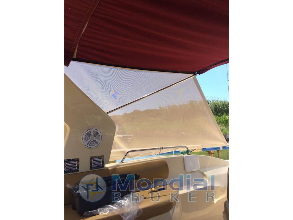 WC separato sotto consolle, timoneria idraulica comandata da motore elettrico, doccetta di servizio a poppa, pompa di sentina posteriore, tre batterie da 130Ah, stacca batteria a 4 posizioni, tendalino anteriore e posteriore, frigorifero sotto la seduta di guida, salpa ancora elettrico con doppio comando sia al volante che a prua.