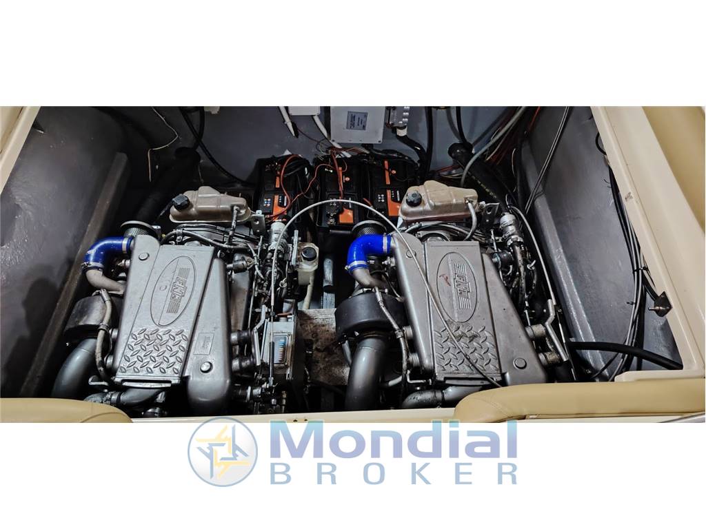 Consumo circa 22 lt/h a 2200 giri circa 20/22 nodi di crociera. A luglio 2025 sono stati effettuati i seguenti lavori documentabili tramite fattura: -smontaggio motore per cambio pompa acqua e cinghie -3 batterie nuove -revisione iniettori e pompa carburante -cablaggi nuovi motori -nuovo impianto liena carburante -tagliando totale entrambi i motori -revisione piedi poppieri -pulizia serbatoi