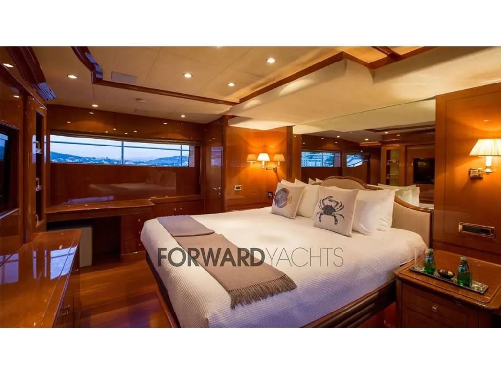 La suite armatoriale si trova sul ponte principale, una caratteristica rara per uno yacht di queste dimensioni, mentre il ponte inferiore offre una spaziosa VIP a tutto baglio e due doppie con letti songoli in piano.