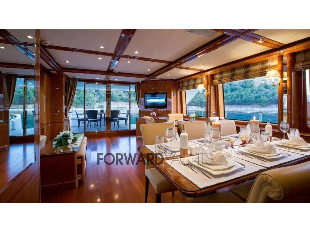 Il salone e la zona pranzo condividono un layout open space sul ponte principale, creando uno spazio luminoso e versatile per gli ospiti. Le aree esterne sono distribuite su tre ponti.