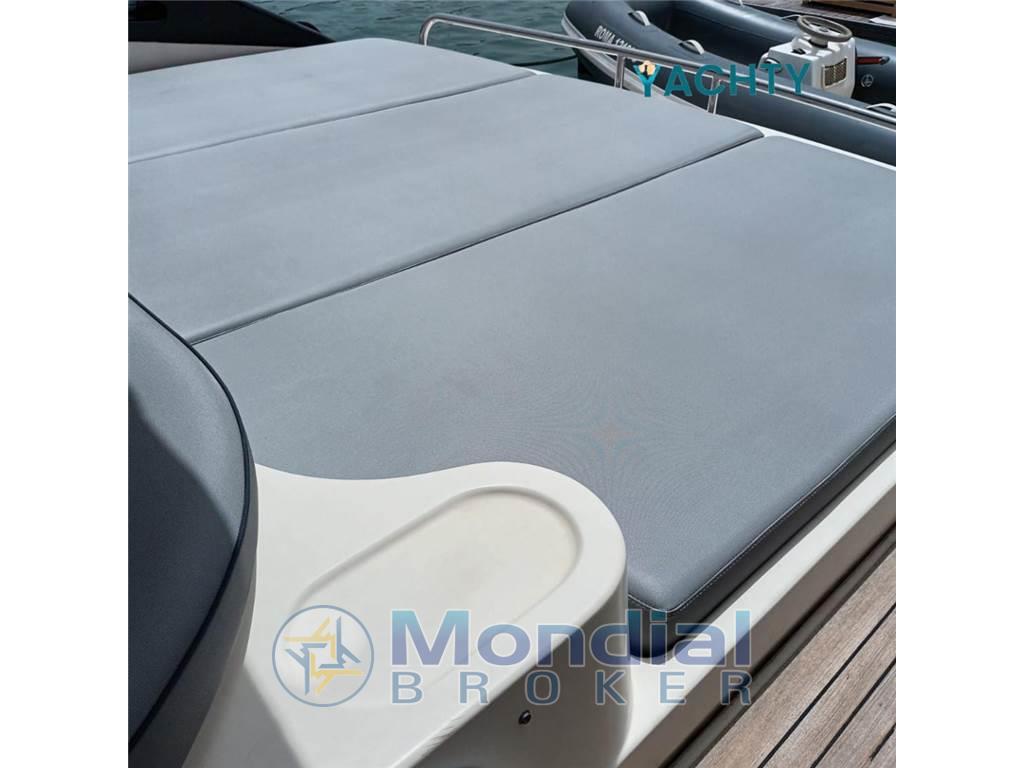 Allarme motore, Ancora, Angolo barra, Autoclave, Autogonfiabile, Batterie, Bussola, Caricabatterie, Colorazione speciale, Comando motori elettronico, Contamiglia, Doccia esterna, Ecoscandaglio, Elica di prua - bow thruster, Faro orientabile, Flap idraulici, GPS, Gruette per tender, Indicatori Flaps, Lavaggio catena, Lavandino nel Pozzetto, Luci di cortesia, Passerella (telescopica, tre elementi a scomparsa.), Piattaforma (in teak), Pilota automatico, Plotter con antenna GPS, Pompa di sentina automatica, Pompa di sentina elettrica, Pompa di sentina manuale, Pozzetto Teak, Presa 220V banchina, Presa acqua banchina, Radio VHF, Rollbar, Salpa Ancore Elettrico, Scaletta da bagno, Sedile Copilota, Tavolo pozzetto, Tromba, Winch tonneggio di poppa (a sx)