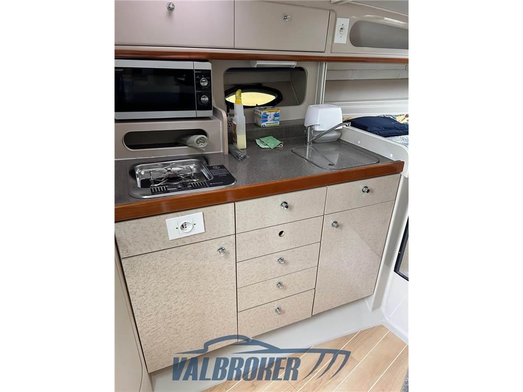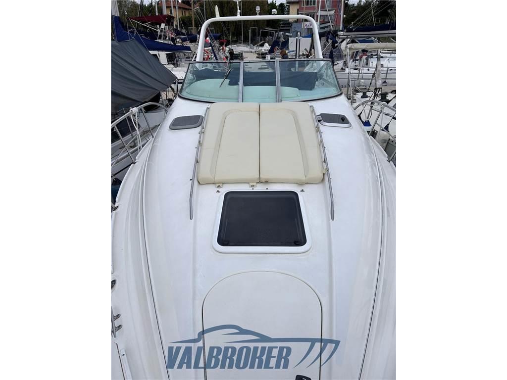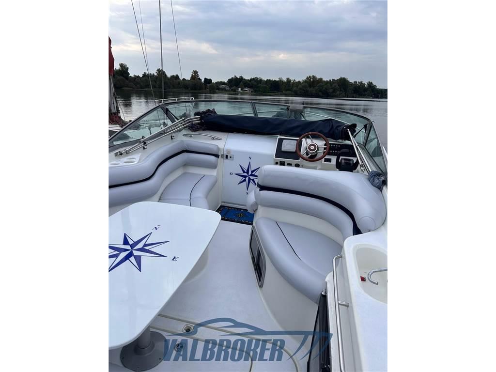 Express cruiser di produzione canadese noto per il suo ampio pozzetto e il design sportivo. Motorizzato con 2x Mercruiser 4.3 benzina V6. Motori ricondizionati e portati a ore zero. 2024: revisione completa trasmissioni, sostituzione anodi. Trattamento anti-osmosi e antivegetativa.