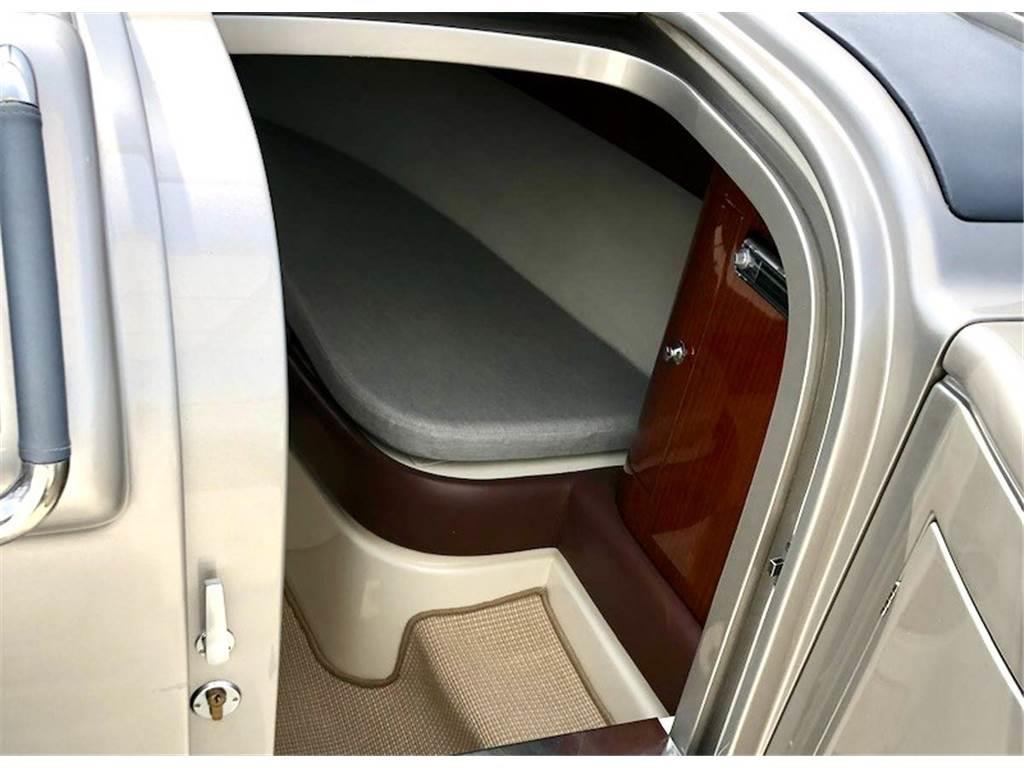 Coperta: prendisole di poppa, divano semicircolare per passeggeri, divano per pilota e co-pilota, plancia di comando, mobile bar con lavandino e frigorifero, torretta centrale con tientibene trasformabile in tavolo pranzo. Sottocoperta: cuccetta con letto matrimoniale a V, wc centrale e armadietti sui lati.