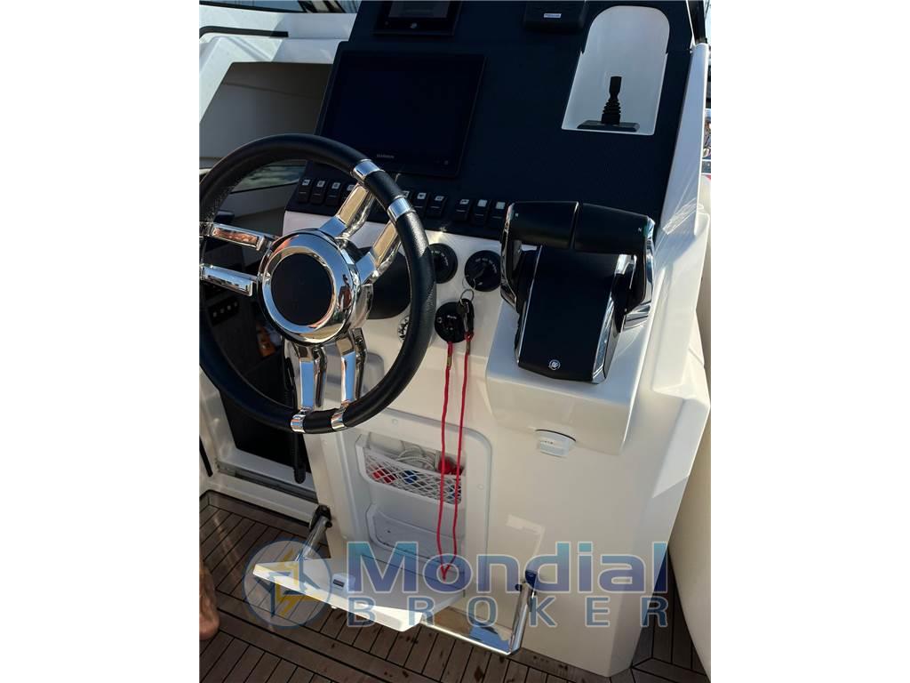 Equipaggiamenti: Elica di prua - verricello elettrico - Impianto stereo Fusion - mobile con lavello e frigo 75 Lt - caricabatterie 30 ah - teak nel pozzetto - tavolo esterno elettrico - tendalino sole abbattibile - cuscini prendisole