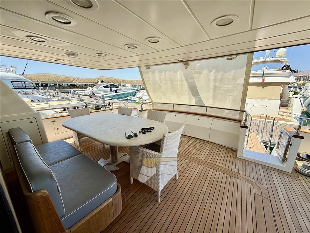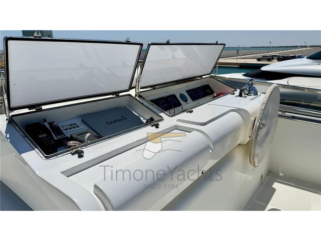 Allarme sentina, Ancora, Apertura Vano Motore Elettrica, Autogonfiabile, Camminamenti laterali in teak, Doccia esterna, Doppia timoneria, Elica di poppa - stern thruster, Elica di prua - bow thruster, Faro orientabile, Flap idraulici (N°2), Gruette per tender su fly, Impianto antincendio, Lavaggio catena, Passerella, Piattaforma, Pompa di sentina automatica, Pompa di sentina manuale, Ponte in teak, Porta ingresso, Porta laterale, Pozzetto Teak, Raddrizzatore, Rollbar, Salpa Ancore Elettrico, Scaletta da bagno, Selle per Tender, Tavolo pozzetto, Tromba, Winch tonneggio di poppa.