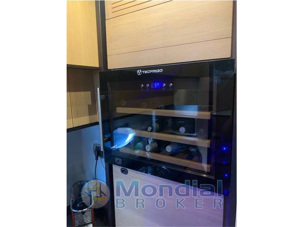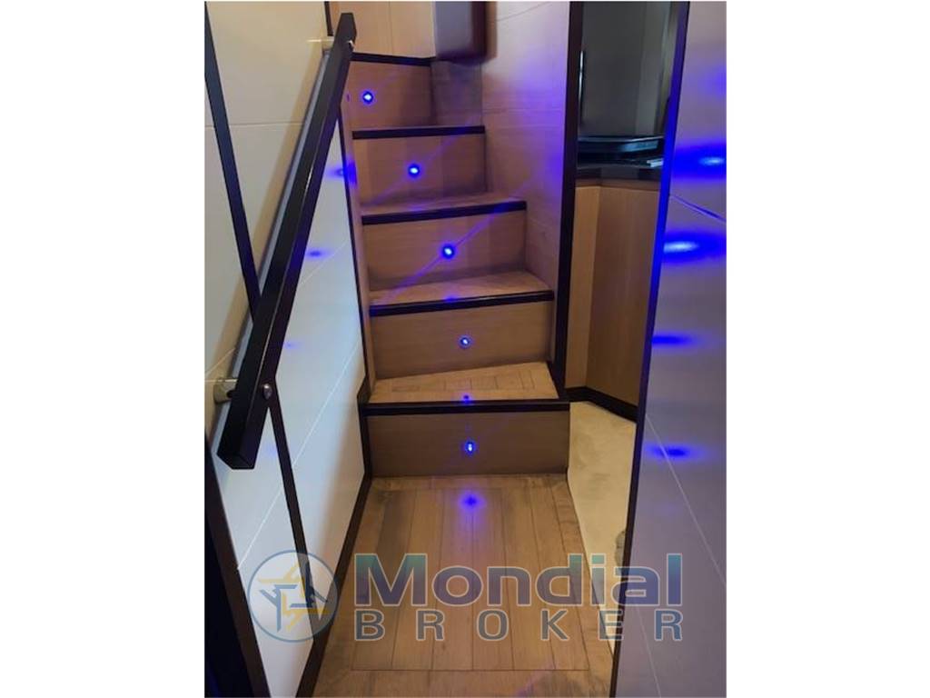 aria condizionata caldo freddo, elica di prua, elica di poppa, passerella idraulica, pozzetto e pedana in teak, cuscinerie complete fly e pozzetto rifatte luglio 2024, tendalini vari rifatti nuovi luglio 2024, luci di cortesia blu in tutti gli ambienti e pozzetto, frigo, freezer, frigo fly, piastra induzione fly, pasta induzione cucina, cantinetta vini cucina, divani in pelle chiara, interni in rovere chiaro, wc tecma, tv in ogni cabina, antenna satellitare, microcomandi motori, boiler inox, moquette chiara