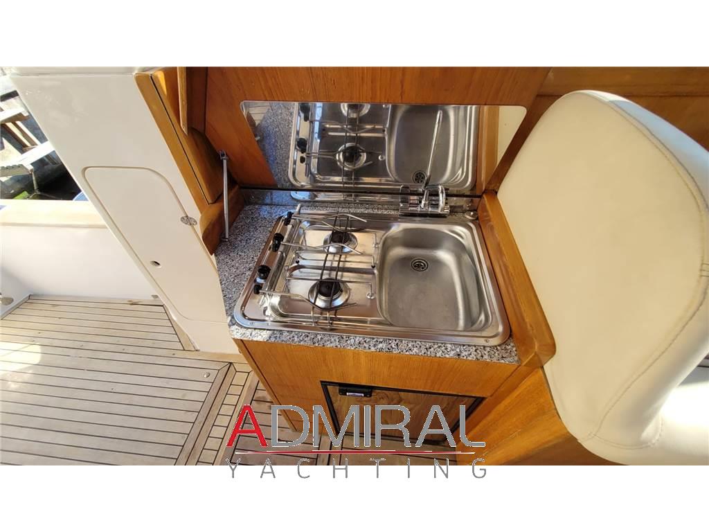 Allarme motore, Allarme sentina, Ancora, Autoclave, Batterie, Caricabatterie, Colorazione speciale (SCAFO BLU), Doccia esterna, Elica di prua - bow thruster, Flap idraulici, Impianto antincendio, Indicatori Flaps, Lavaggio catena, Lavandino nel Pozzetto, Luci di cortesia, Piattaforma, Pompa di sentina automatica, Pompa di sentina elettrica, Pompa di sentina manuale, Porta ingresso, Pozzetto Teak, Presa 220V banchina, Rollbar, Salpa Ancore Elettrico, Scaletta da bagno, Tavolo pozzetto, Tientibene con cancelletti, Tromba, Altoparlanti, Cucina, Cuscineria completa, Cuscineria di poppa, Cuscineria Pozzetto, Fornello, Frigorifero esterno, Pavimento interno in legno, Portacanne, Prese interne 220v, Radio AM/FM, Tendalino, WC marino manuale