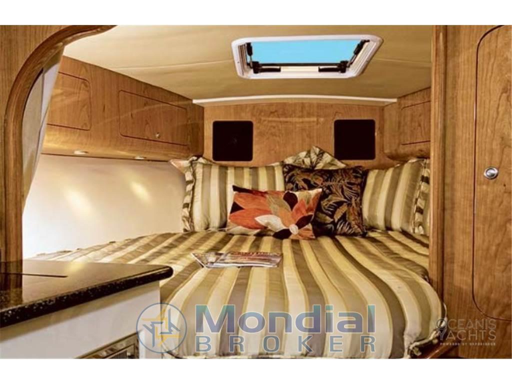 Il layout walkaround con ampio pozzetto lo rende ideale sia per la pesca sportiva che per uscite giornaliere e brevi crociere. Gli spazi esterni sono progettati per la pesca, con vasche del vivo, fish box e attrezzature dedicate, mentre gli interni offrono una cabina confortevole con letto matrimoniale, dinette convertibile, bagno separato e angolo cucina attrezzato.