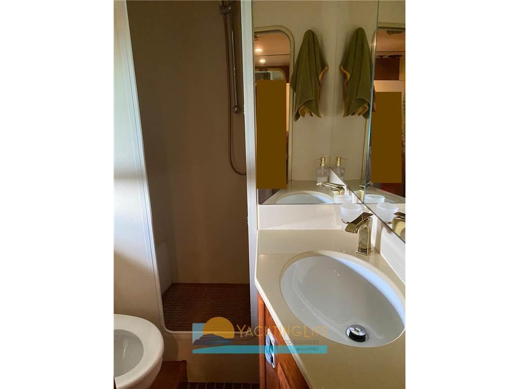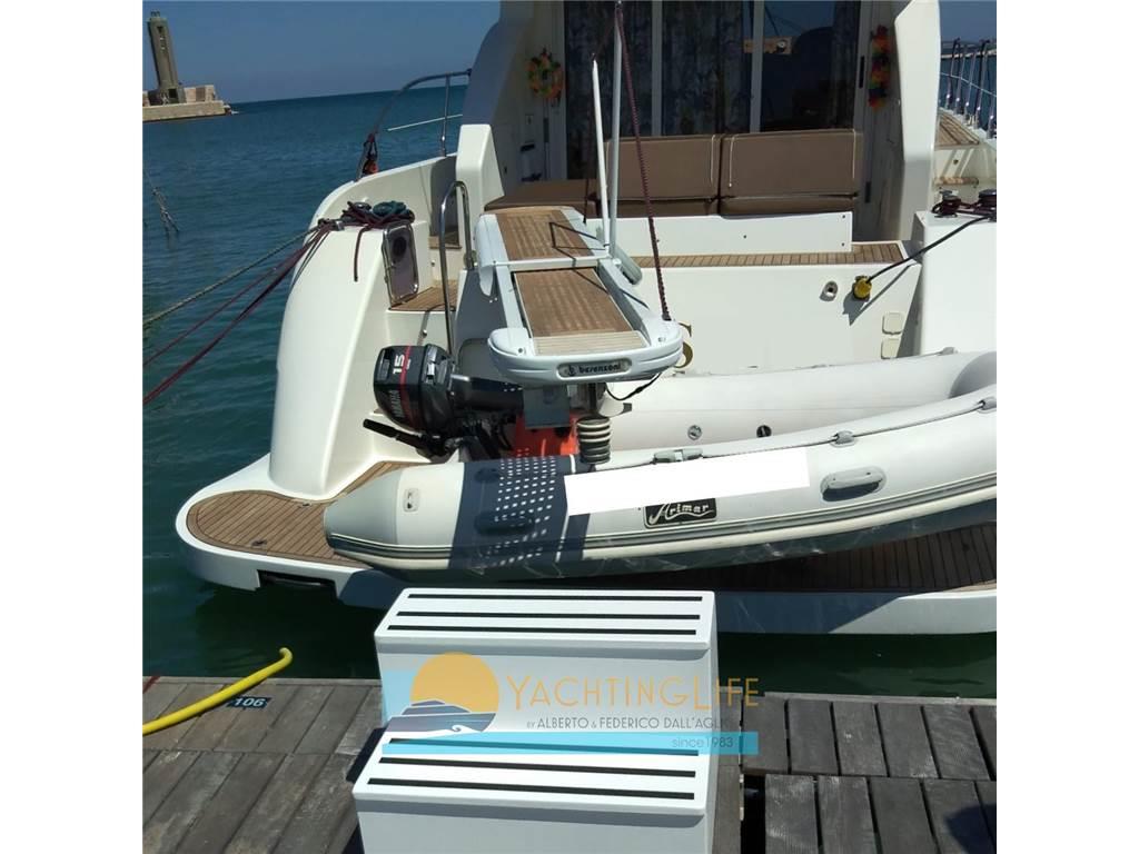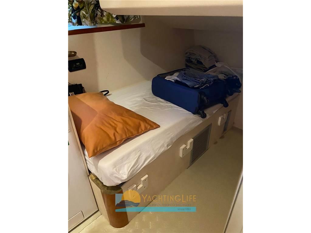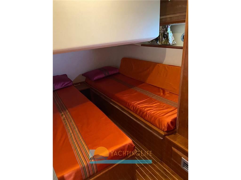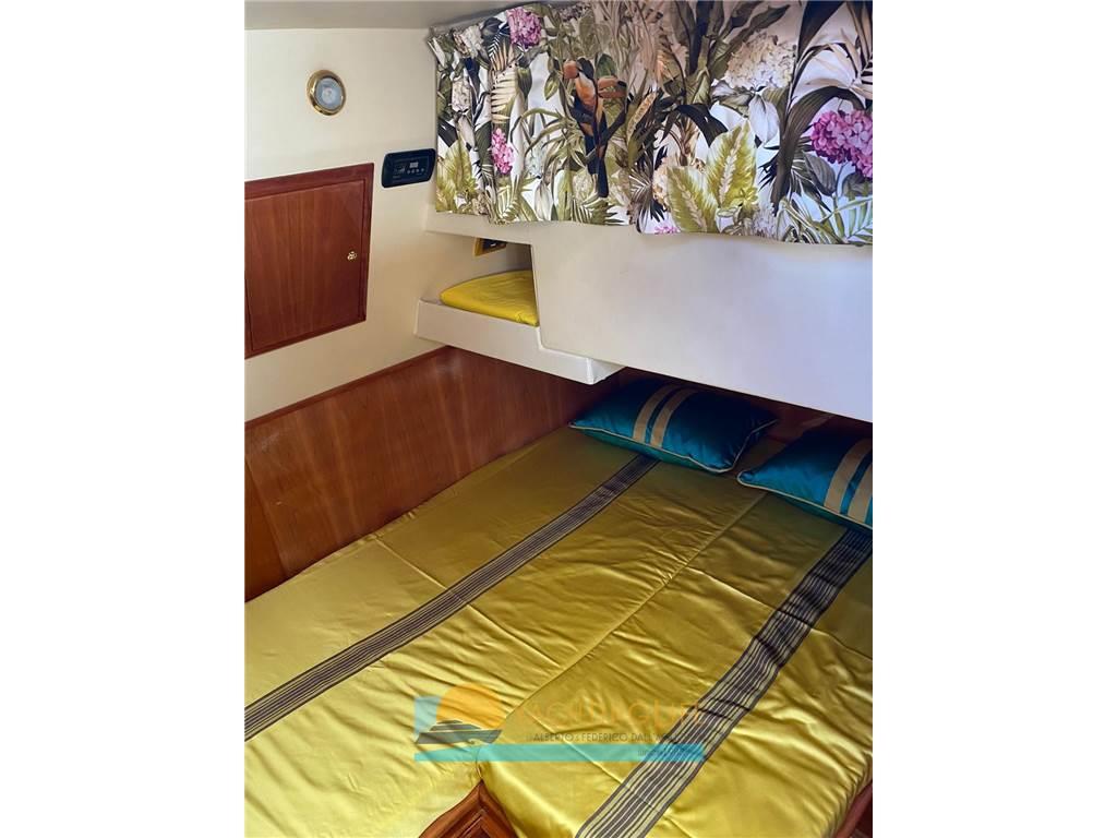 Due proprietari da nuova - Buone condizioni - Asse di rispetto - Tenda elettrica a poppa - Matrimoniale a prua, cabina a letti in piano a centro barca e singola per marinaio sempre a centro barca, a poppa cabina matrimoniale, tutte con proprio bagno