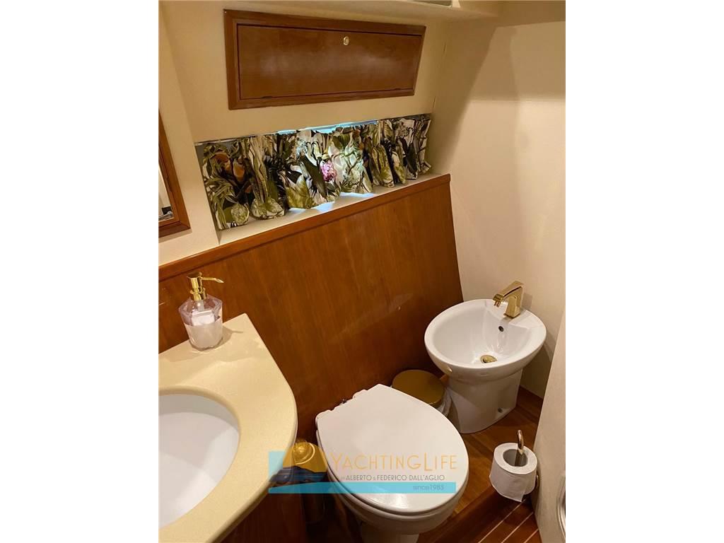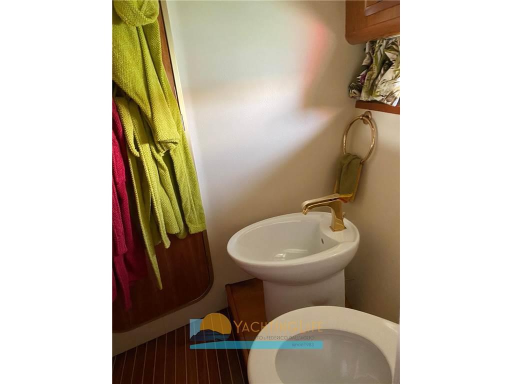 1 Matrimoniale italiana, 1 Matrimoniale francese, 1 Doppia in piano, 1 Cabina equipaggio, 1 Toilette con doccia, 1 Dinette, 1 Cucina, 1 Toilette Equipaggio, 2 Toilette doccia no bidet
