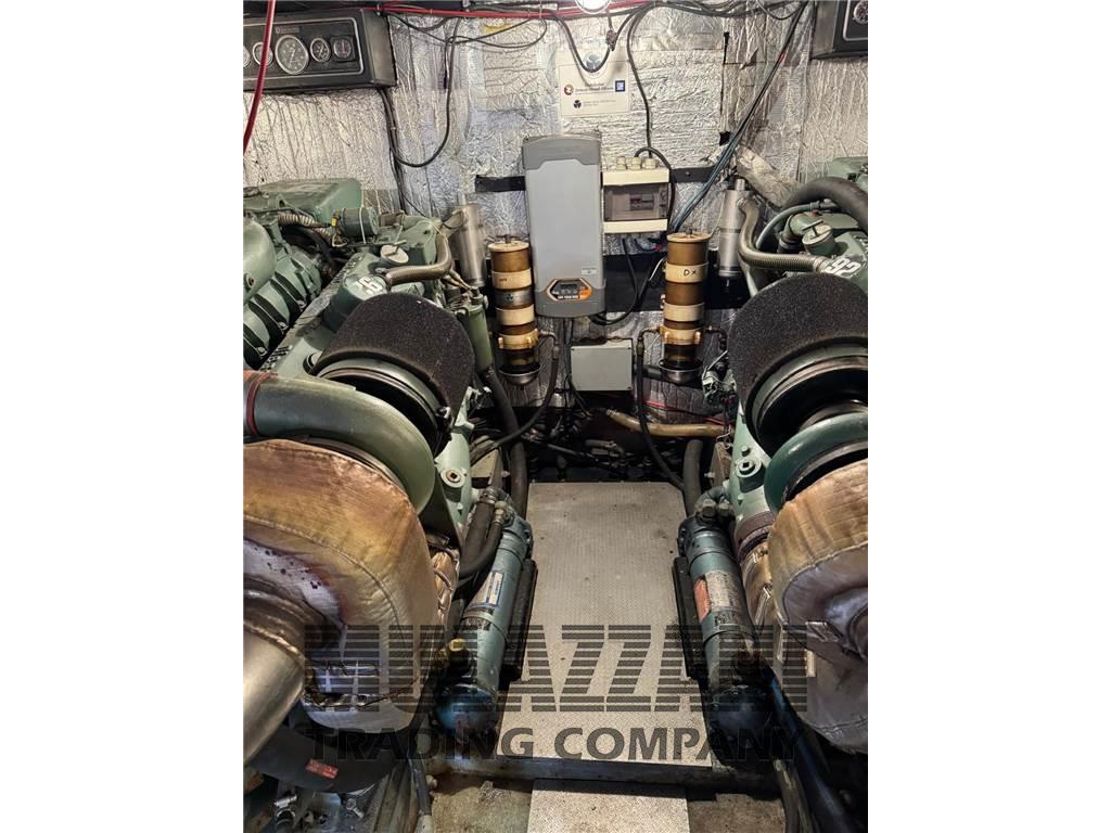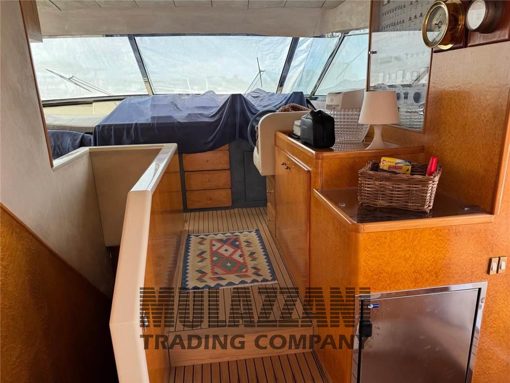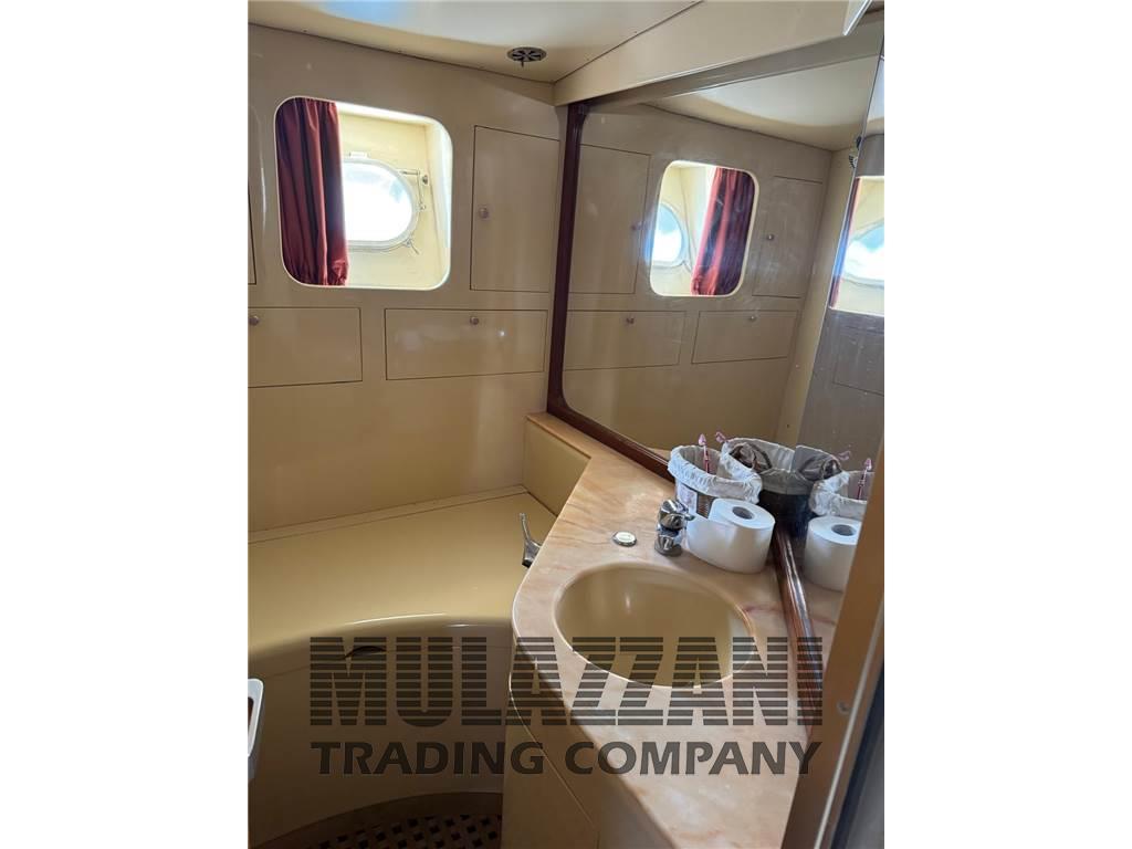 Altoparlanti, Aria condizionata (Condaria), Barometro, Boiler (elettrico), Cassetta di pronto soccorso, Copripozzetto (chiusura invernale), Cucina, Cuscineria completa, Cuscineria di prua, Cuscineria fly, Dotazioni di sicurezza oltre 50 miglia, Forno, 2 Frigorifero interno, Giubbetti di salvataggio, Impianto TV, Indicatore del serbatoio del carburante, Indicatore del Serbatoio dell’Acqua, Pavimento interno in legno (in simil teak), Piastra in vetroceramica, Prese interne 12v, Prese interne 220v, Radio AM/FM, Riscaldamento, Salvagente anulare con cima munita di boetta luminosa, Stereo, Teli copri finestra, Telo copribarca (totale da prua a poppa), Telo copriconsolle (sul fly), Telo coprisedile (sul fly), Tendalino (ombreggiante laterale a poppa), 5 TV (LCD), 3 WC marino elettrico, Zattera di salvataggio, Wet bar sul Fly