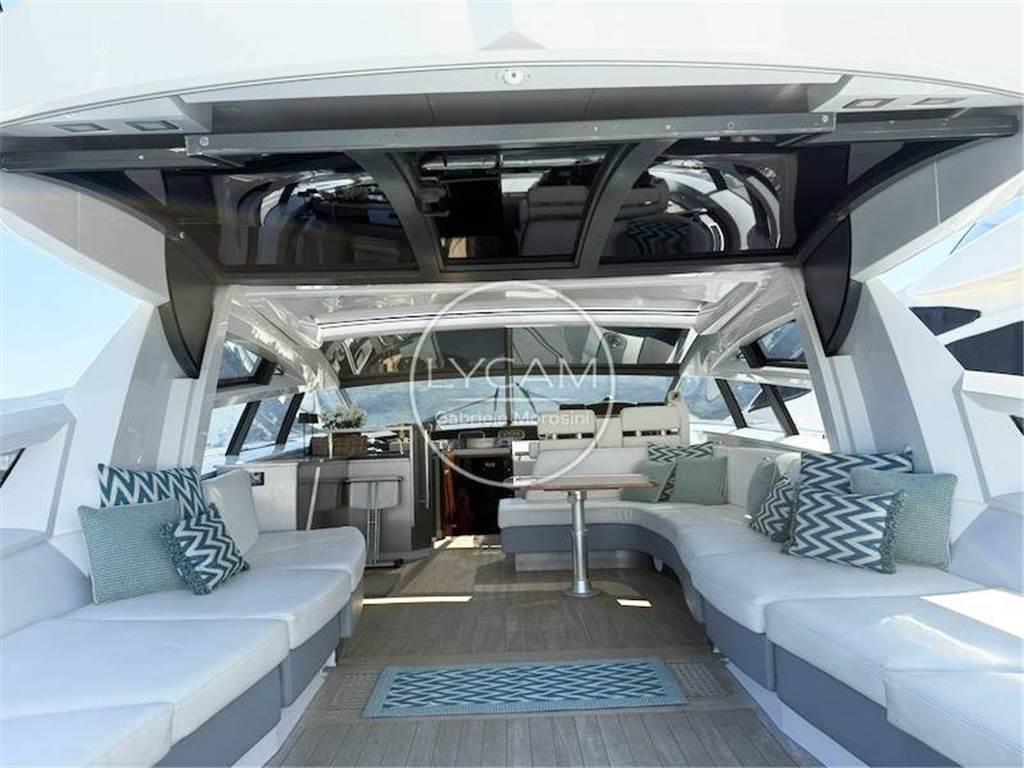 Ulteriore aspetto identificativo è l’assenza di ingombri e di interruzioni del pozzetto che può diventare un unico ambiente da vivere all’aria aperta oppure, chiudendo la vetrata panoramica poppiera, si può usufruire del comfort di un ambiente protetto e climatizzato.