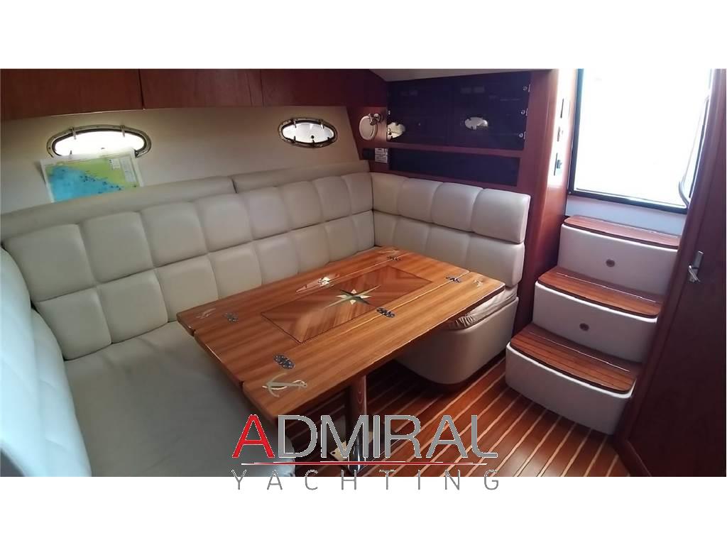 Allarme motore, Allarme sentina, Ancora (CON CATENA IN ACCIAIO INOX), Autoclave, Batterie, Caricabatterie, Comando motori elettronico, Doccia esterna, Faro orientabile (DOPPIO), Flap elettrici, Impianto antincendio, Impianto acque nere, Lavandino nel Pozzetto, Luci di cortesia, Piattaforma, Pompa di sentina automatica, Pompa di sentina elettrica, Pompa di sentina manuale, Porta ingresso (SPECCHIO POPPA), Presa 220V banchina, Rollbar, Salpa Ancore Elettrico, Scaletta da bagno, Tavolo pozzetto, Tromba, Altoparlanti, Aria condizionata, BBQ/ Grill, Bimini, Boiler, Clima reversibile, Congelatore, Cucina, Cuscineria completa, Cuscineria di poppa, Cuscineria di prua, Cuscineria Pozzetto, Digitale Terrestre, Frigorifero interno, Impianto TV, Microonde, Pavimento interno in legno, Piastra elettrica, Portacanne, Prese interne 220v, Radio AM/FM, Riscaldamento, Stereo, Tendalino, Trolling Valve, TV, WC marino elettrico