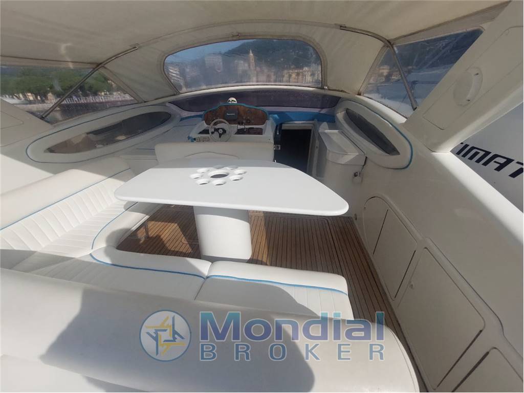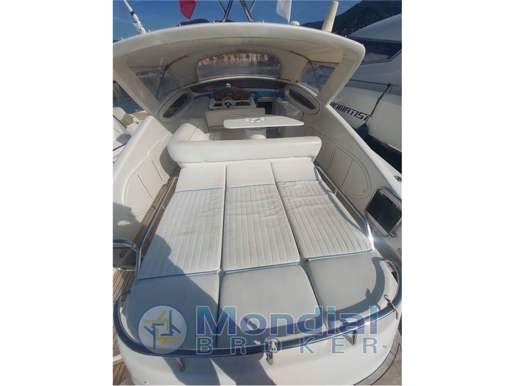 Imbarcazione privata, appena rimessata da cantiere specializzato (Nautica Sport), pronta alla navigazione. Livrea bianca e turchese, linee sportive e proporzioni armoniose. Ampi spazi esterni: prendisole a prua, zona living a poppa con tavolo centrale, cuscineria completa e pavimentazione in teak. Plancia ben organizzata, strumentazione Raymarine, copertura in acciaio con parabrezza integrato.