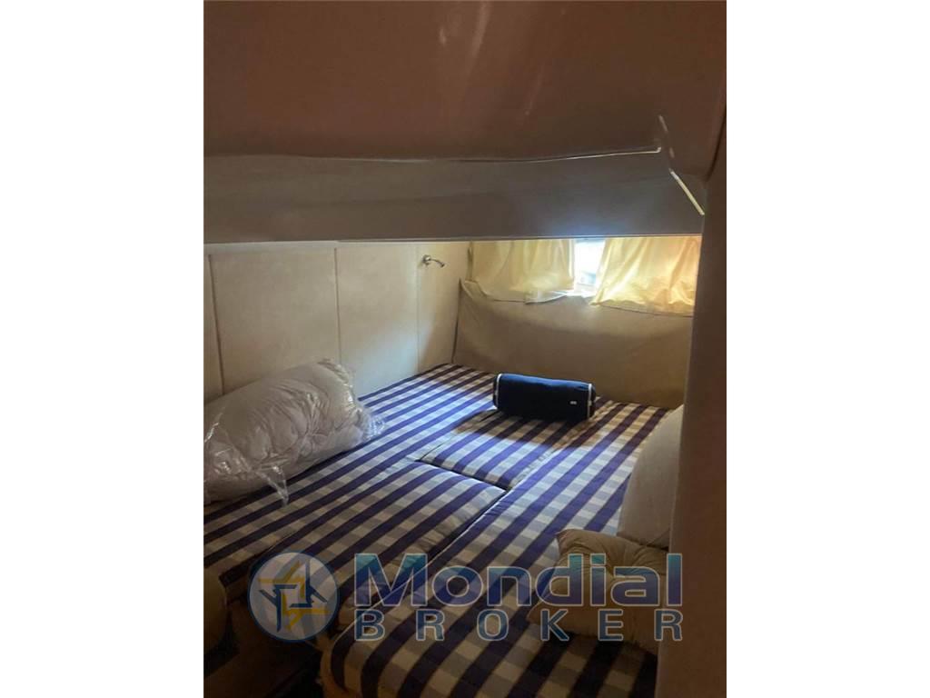 Layout : 2 cabine separate, bagno, dinette con tavolo e divano, angolo cottura con 2 fornelli a gas, frigo , lavandino e microonde, ampio pozzetto con tavolo e divano semicircolare, comodo prendisole di prua.