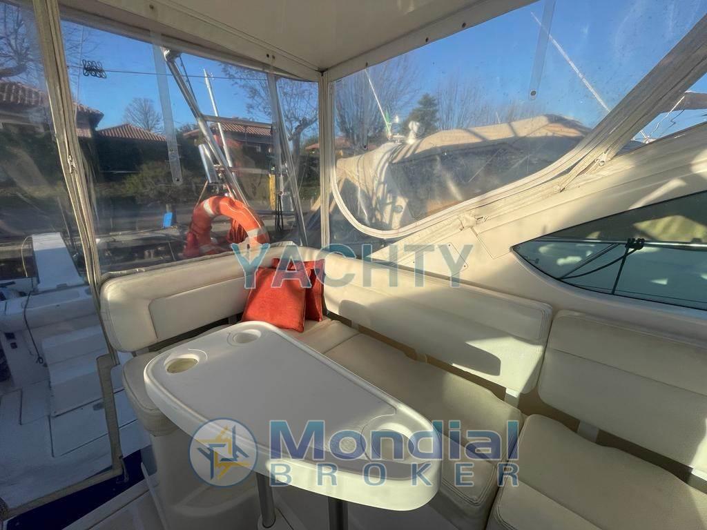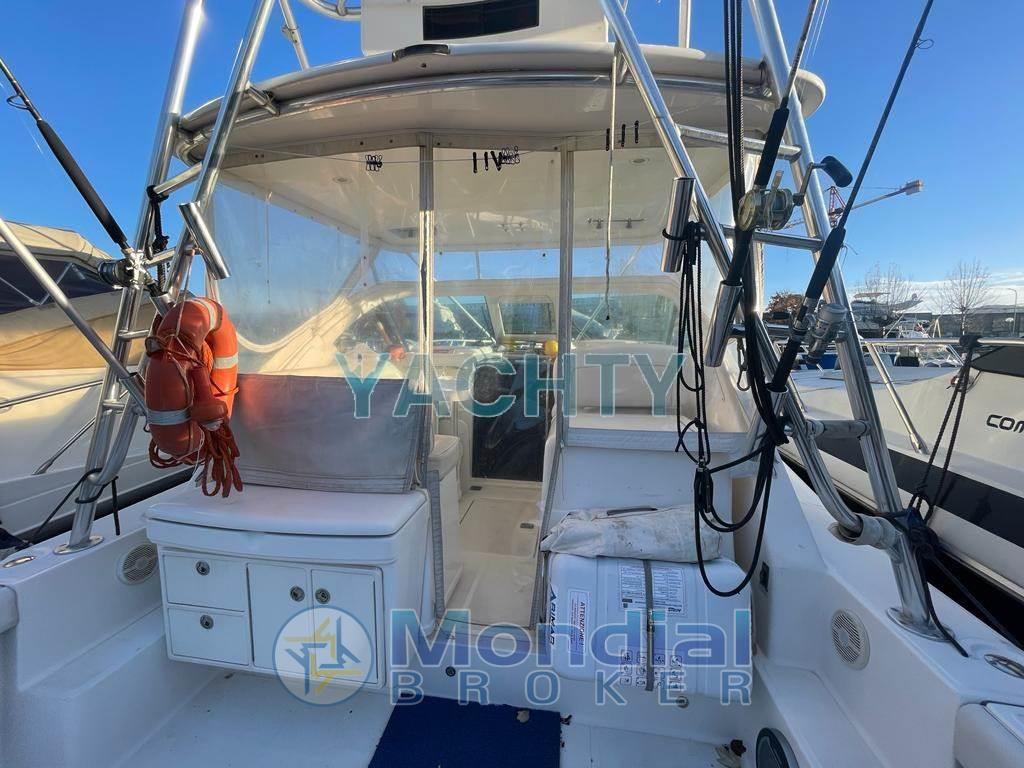 Altoparlanti, Aria condizionata (Dometic), Boiler, Cucina, Cuscineria completa, Divergenti, Frigorifero interno, ICE Maker, Microonde, Pavimento interno in legno, Prese interne 220v, Radio AM/FM, Stereo, Telo coprisedile, Tuna tower, TV, Vasca del vivo, Vasca pescato, WC marino elettrico