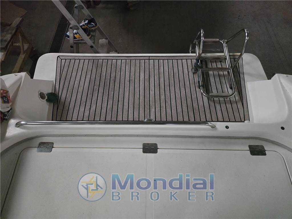 Cuscineria completa, plancia di poppa rivestita in teak, doccia a scomparsa, scaletta bagno, verricello elettrico, mobile esterno con lavabo e fornello