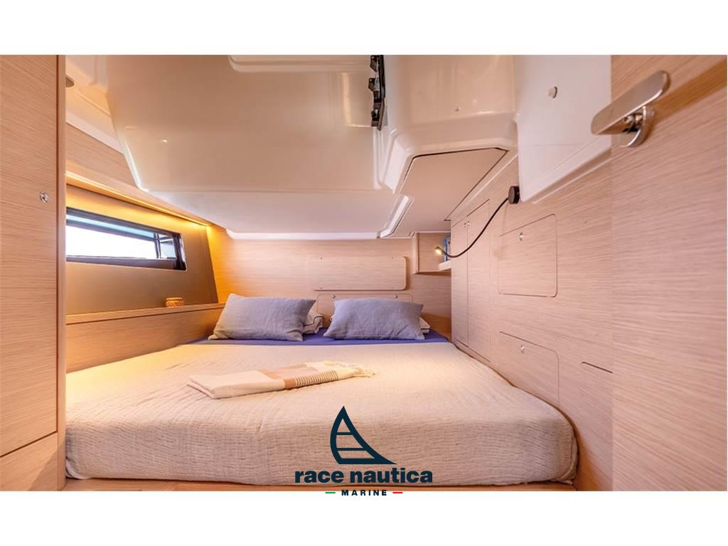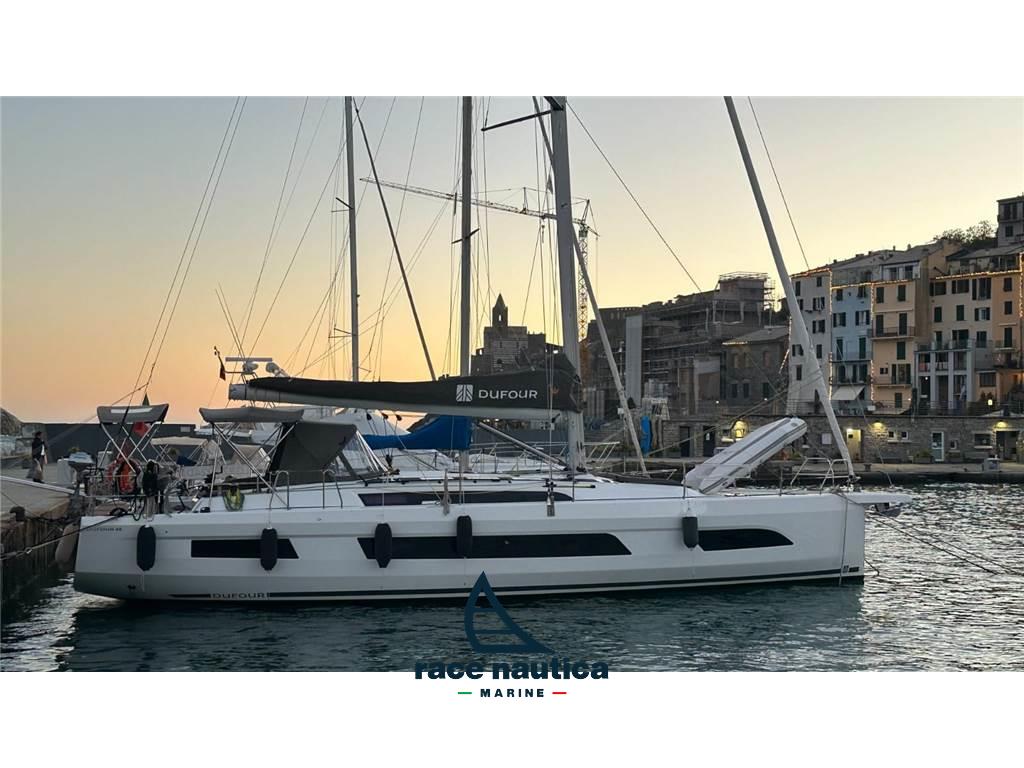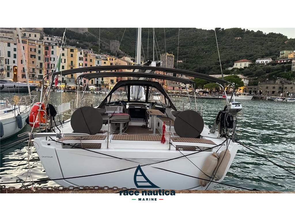 Dufour 48 - 5-Cabin Charter Version - available for October 2025. Pullman instead of port storage, tunnel bow thruster, Yanmar 80hp saildrive engine, lazy bar, lazy jacks, battened mainsail and self-tacking jib, rigid vang, mainsheet on the coachroof without mainsail, reefing lines lead back to the cockpit, cockpit shower (hot/cold), cockpit table with storage, 2000W anchor winch, 90A battery charger, 220V system, shore and boat socket, 1600W inverter, 40L boiler, electric seawater pump, automatic freshwater pumps, padded headboard in the forward cabin, Dacron genoa instead of self-tacking jib, two T50 winches aft, Genoa tracks + sheets, two additional T50 winches on the dodger for German system with sheet. mainsail, gennaker equipment, fusion RA 70 bluetooth stereo system with 2 speakers in the cockpit and 2 in the dinette, gas barbecue in the stern, sink, sprayhood with handrail, induction charger for mobile phones, electrically assisted opening from the stern platform, outboard engine bracket, cockpit cushions with backrests, a Triton model 2 repeater on the port side and a Triton model 2 multifunction repeater on the starboard side, VHF V100, autopilot with hydraulic piston, 9” Zeus 3 GPS chartplotter on the starboard side on the instrument panel in place of the Triton 2 repeater, hull preparation + black antifouling, T50 electric winch on the starboard deckhouse, folding bimini, stainless steel bow protection, anchoring kit, difference for 50m of chain at the end of the rope, standard interiors, electric toilet in the bow.