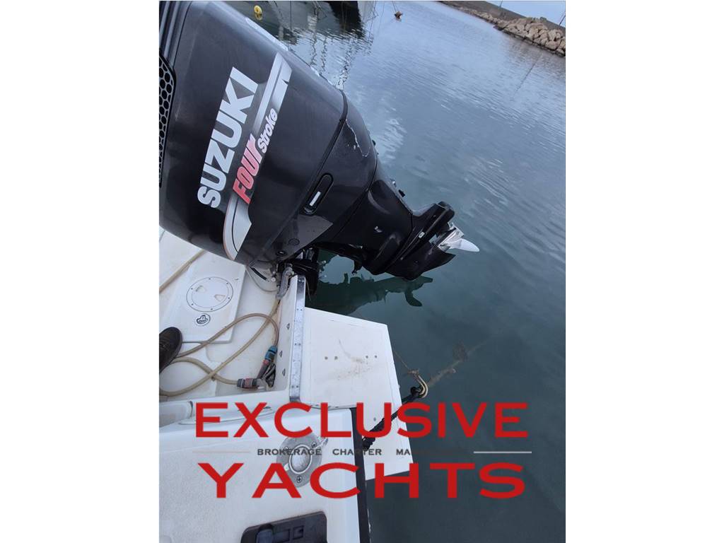 Con una lunghezza di circa 8,50 metri e un baglio generoso di circa 3 metri, questa unità è equipaggiata con un motore fuoribordo Suzuki da 250 HP, che assicura affidabilità, semplicità di gestione e buone prestazioni in navigazione.