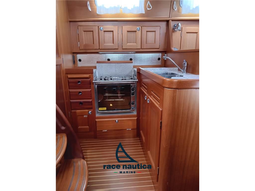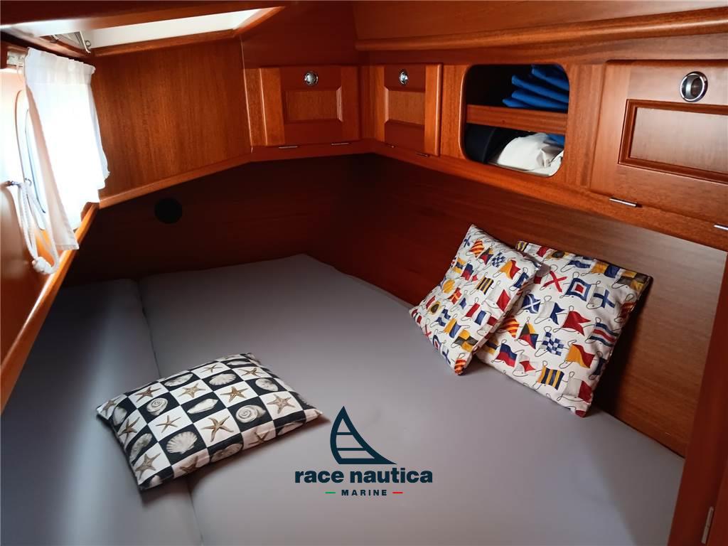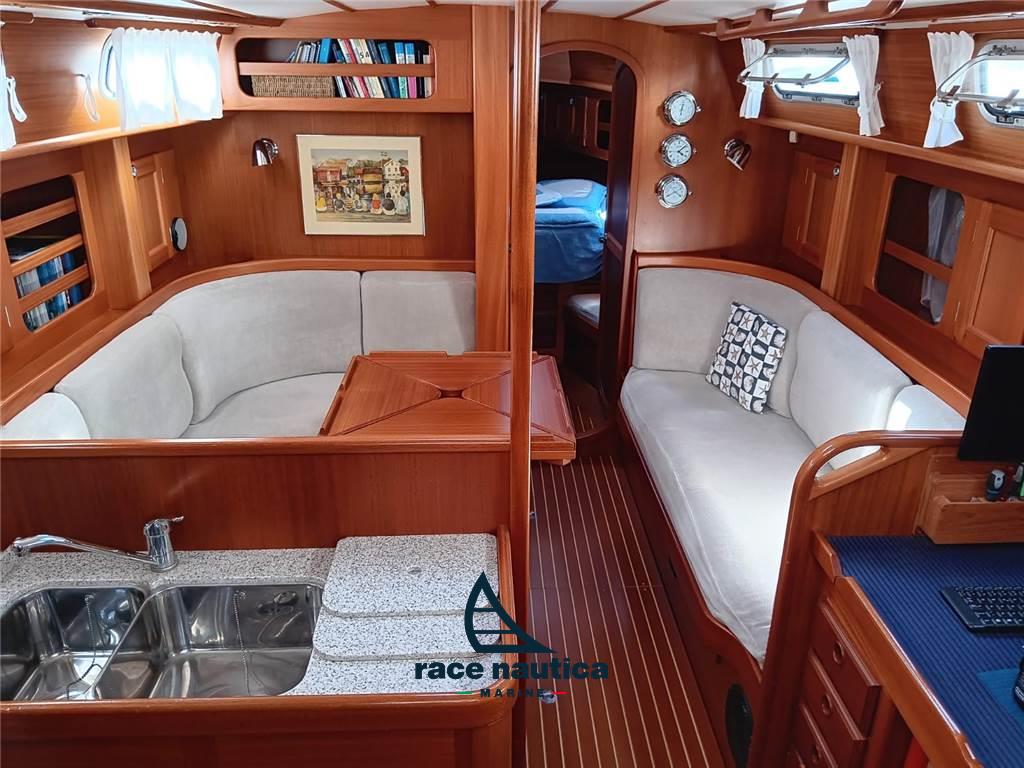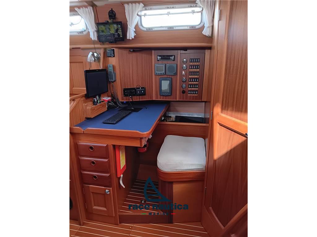 Albero Seldèn con randa avvolgibile steccata verticalmente, Ropercutter sull'asse dell'elica, Giunto flessibile dell'albero dell'elica Acqua Drive, Vang Seldèn nuovo del 2020, Sistema avvolgifiocco Harken con genoa avvolgibile, Bompresso Gennaker, Tangone Spinnaker con sollevamento, Drizza spinnaker (con bozzelli, scotte... ), Sistema strallo Solent retrattile, 2 Winchs inox Andersen elettrici, Winch inox Andersen elettrico per avvolgifiocco lato sinistro, Winch inox Andersen per scotta randa lato destro, 2 Winchs inox Andersen all'albero per drizze, Linee di sicurezza sul ponte – punti di attacco delle linee di sicurezza in pozzetto, Cancelli di ringhiera a dritta ed a sinistra, Striscia di protezione in alluminio extra sul listello del piede, Randa e Genoa 150% nuovi del 2017, Code0 con sistema avvolgitore UbiMayor, Solent con sistema avvolgitore UbiMayor, Gennaker, Raymarine ST60, Autopilota Raymarine ST6001,Chartplotter Raymarine Axiom 10", Ricevitore Navtex ICS nav6, Raymarine Ray 230e VHF con culla extra in pozzetto, Radio CD con 2 altoparlanti nel salone + 2 altoparlanti in pozzetto + altoparlante per bassi extra all'interno, Propulsore di prua Sleipner SP95, Alimentazione da banchina 220V con interruttore differenziale e diverse prese di corrente, Caricabatterie Victron Phoenix Smart IP43 nuovo del 2023, Victron Smart Shunt 500A-50mV nuovo del 2023, Caricabatterie Victron CD-CD Orion non isolato nuovo del 2023, Victron Smart Solar MPPT/75/10 nuovo del 2023, 3 Batterie di servizi Victron AGM Deep Cycle nuove del 2021, Batteria motore 90Ah nuova del 2021, Isolatore Galvanico, Verricello elettrico ancora, 50mt di catena inox, Ancora Rocna ed ancora Bruce di rispetto, Riscaldamento Eberspacer D5L-C revisionato a dicembre 2023 con sostituzione marmitta, Luci nell'arco di tuga, Luce di ancoraggio a 3 colori LED in testa d'albero, Solenoide per chiudere le bombole del gas, Presa 12V del supporto del timone, Scaldabagno Isotherm 40lt, Tavolo del pozzetto, Tientibene in acciaio inox sul lato sinistro e destro del parabrezza, Gavone esterno con doppia bombola del gas, Acqua corrente calda/fredda, Doccia del pozzetto, Locale doccia separato extra con sedile e pompa di doccia, Barra appendi-abiti, Oblò extra sulla tuga, Doppio lavello inox, Cucina a 2 fuochi, Forno, Frigorifero Isotherm con congelatore, Zattera revisionata nel 2024, Scaletta extra per bompresso, Riflettore radar, Orologio, Igrometro, Barometro, Moquette su tutti i pavimenti interni, Riflettore Radar, Oscuramento rollo ocean ari sotto il portello di prua e nella cabina principale, Cappottina paraspruzzi e tendalino nuovi del 2024, Luci interne ed esterne a LED, Tendalino extra, Pompa completa del WC di rispetto, Cinghia per l'alternatore di rispetto, Pompa per l'espulsione dell'acqua della doccia di rispetto, Serie completa di filtri per gasolio ed olio motore di rispetto,Girante di rispetto, Strallo amovibile in spiroidale di acciaio inox completo di tenditore a volantino (da montare in opera per l'uso di un solent con garrocci) di rispetto.