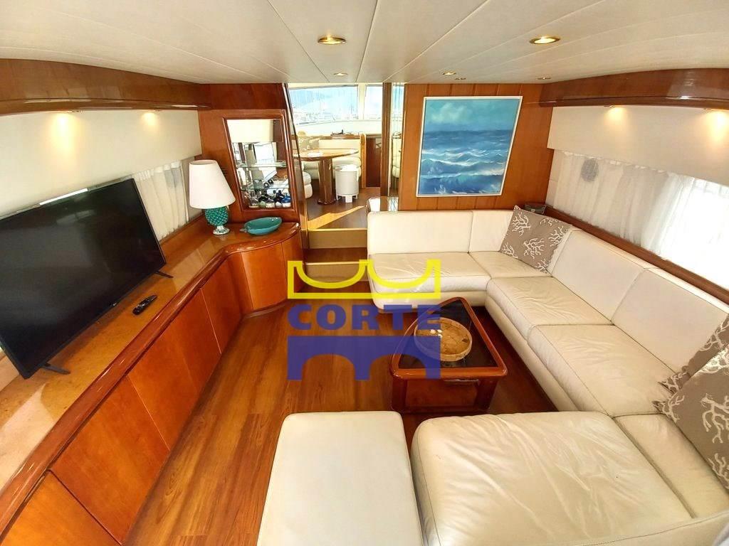 Altoparlanti, Antenna Satellitare TV, Aria condizionata (FRIGOMAR 30000 BTU nuova), Bimini (top nuovo), Boiler, Cassaforte, Clima reversibile, Cucina, Cuscineria completa (nuova), Forno (recente), 2 Frigorifero esterno (storage pozzetto recenti), 2 Frigorifero interno (recenti), Impianto TV (satellitare revisionato), Inverter (nuovo), Lavasciuga (recente), Lavastoviglie (recente), Lavatrice, Microonde (recente), Pavimento interno in legno (nuovo), 2 Piastra in vetroceramica (cucina e fly recenti), Prese interne 12v, Prese interne 220v, Radio AM/FM, Stereo, Telecamera (vano motori 2024), Teli copri finestra (nuovi), 4 TV (salone (nuova) e in tutte le cabine), WC marino elettrico (revisionati 2022), pannello quadro elettrico nuovo